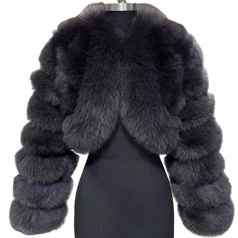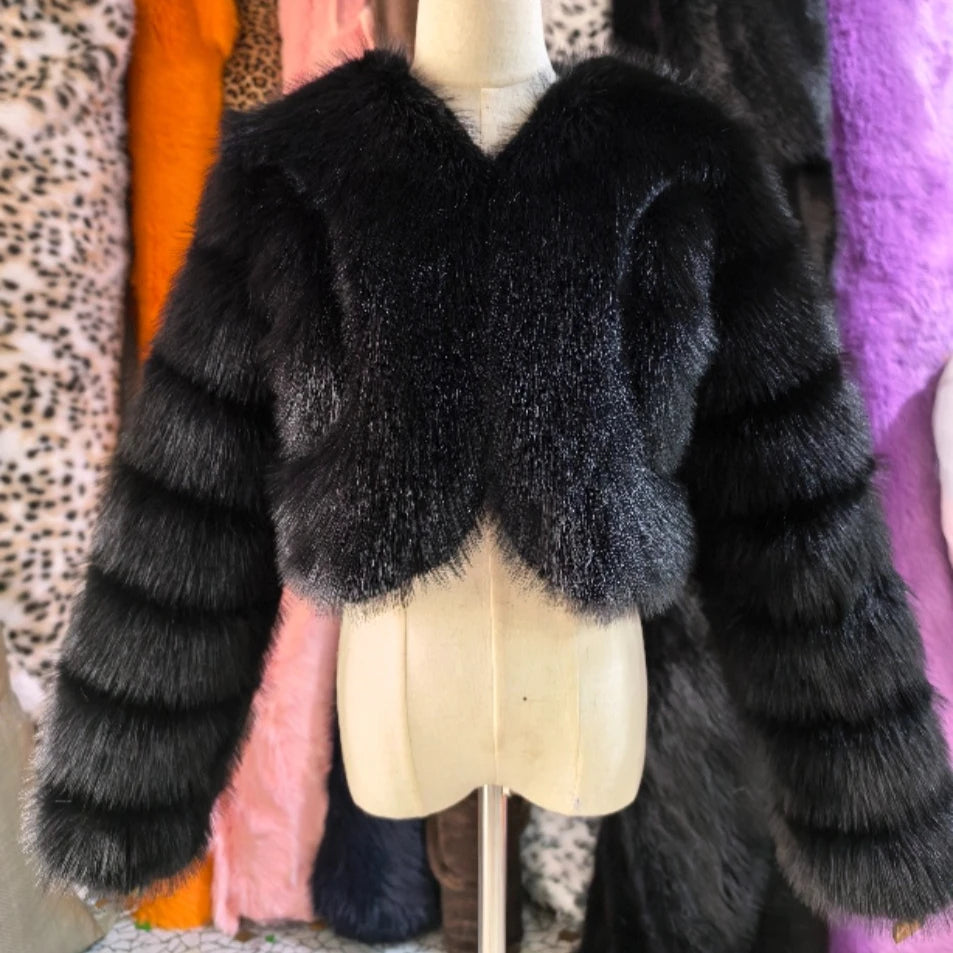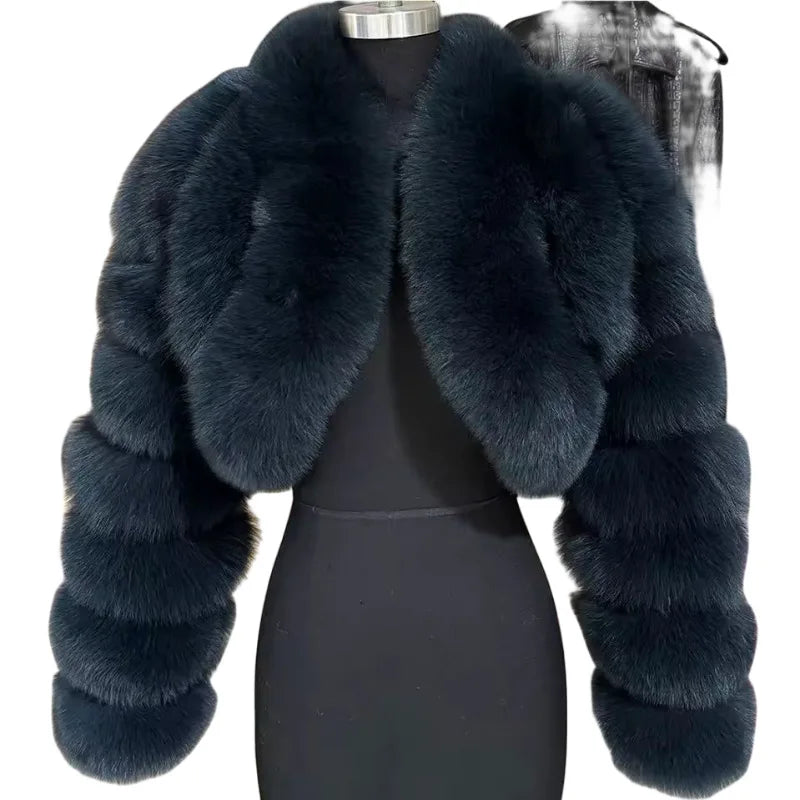 Autumn Winter PU Leather Cropped Jacket with Faux Fur Collar Women Casual Long Sleeve Buckle Coats New Fashion Female Streetwear