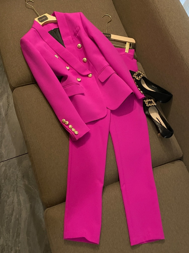 Pink Black Pant Suits Two Pcs Sets Women's Pantsuit Apricot Business Double-breasted Buttons Nine Blazer Pants Formal Suits 2021