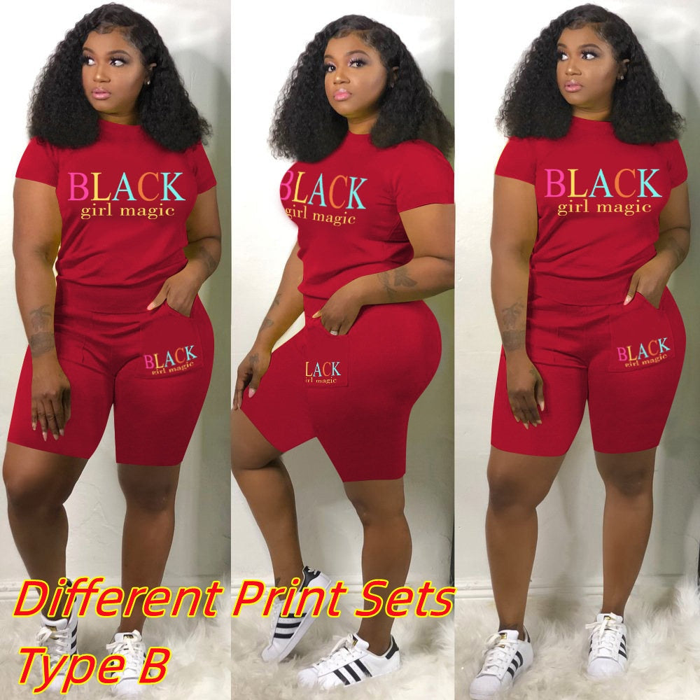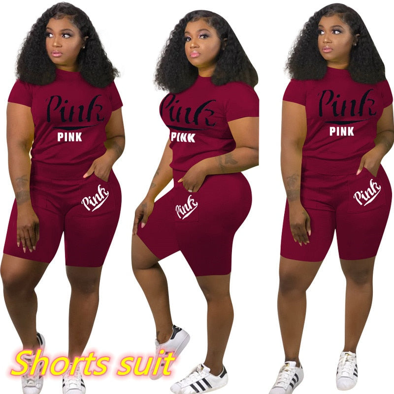 Summer Tracksuit Set For Plus Size Women 2XL Pink Letter Print Top Biker Shorts Suits Casual 2 Piece Set Sport Outfits Sweatsuit