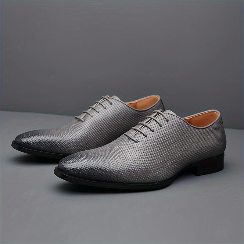 Men's Solid Colour Top Grain Leather Plain Toe Oxford Shoes, Comfy Non Slip Durable Rubber Sole Lace Up Formal Shoes, Men's Footwear