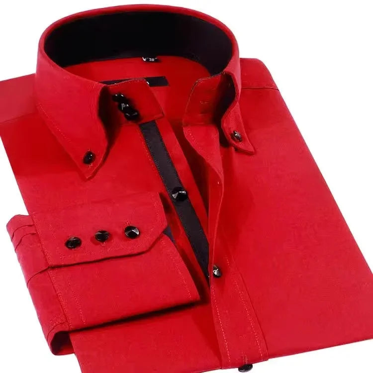 Dress Shirt for Men Button-down Collared Formal Business Long Sleeve Casual Korean Fashion Slim Fit Male Designer Shirts White