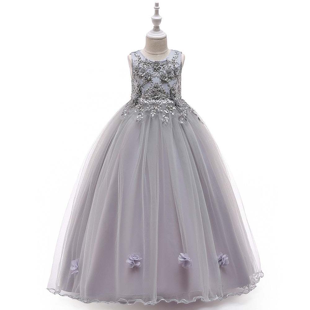 • Lace Formal Dress for Girls Costume Embroidery Wedding Princess Children Tailing Girls Dress Tutu Host Flower Party Kid Clothes