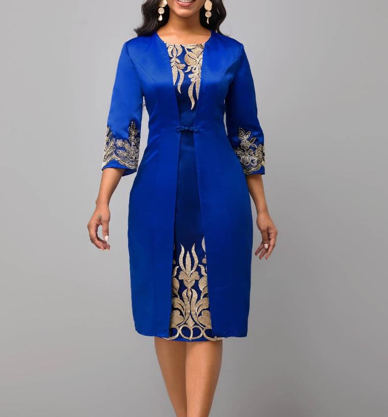 • Women's Elegant Dress 2023 New Lace Stitching Dress Commuting Slim Party Dress Mesh Stitching Three-Quarter Sleeve Formal Dress