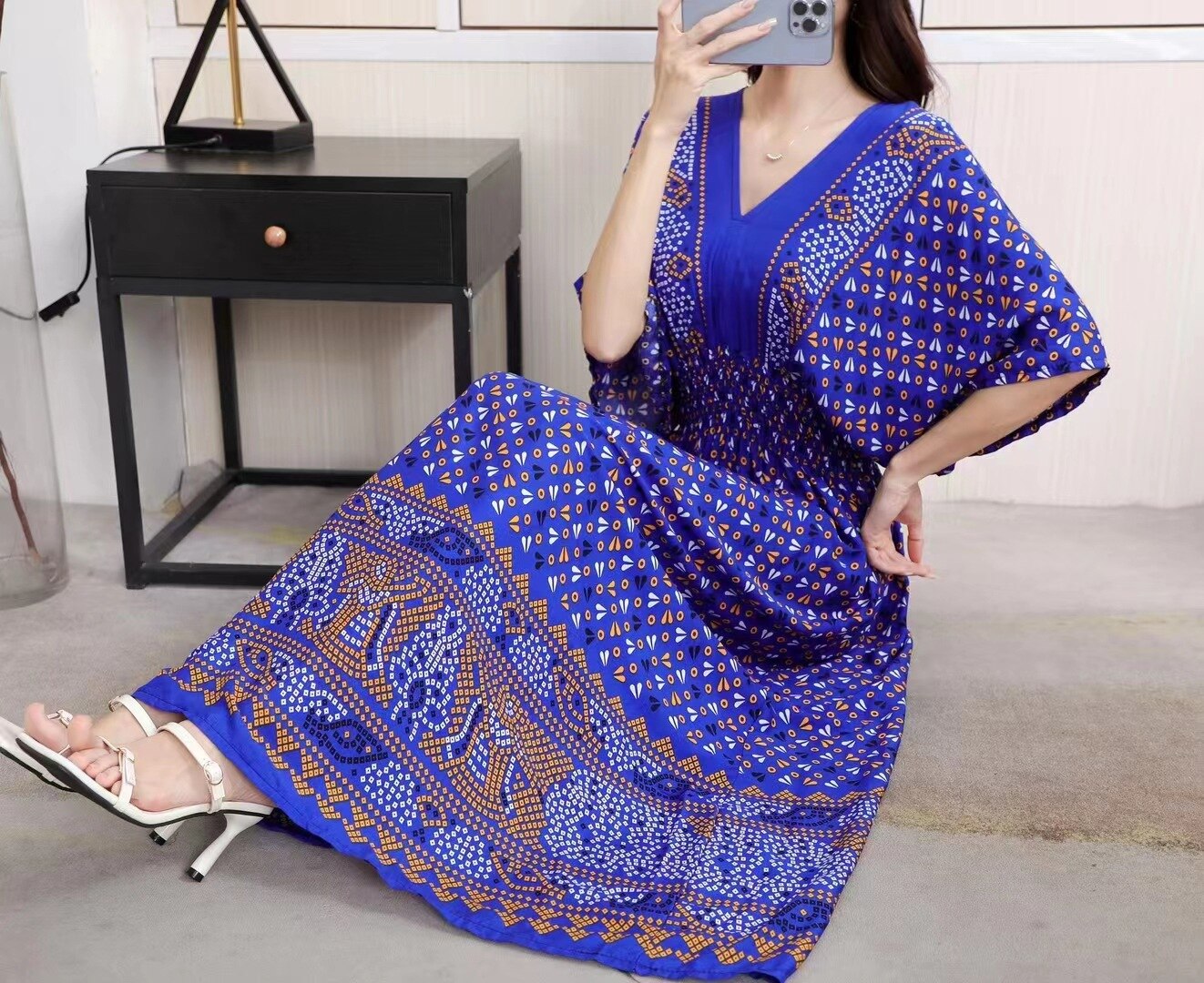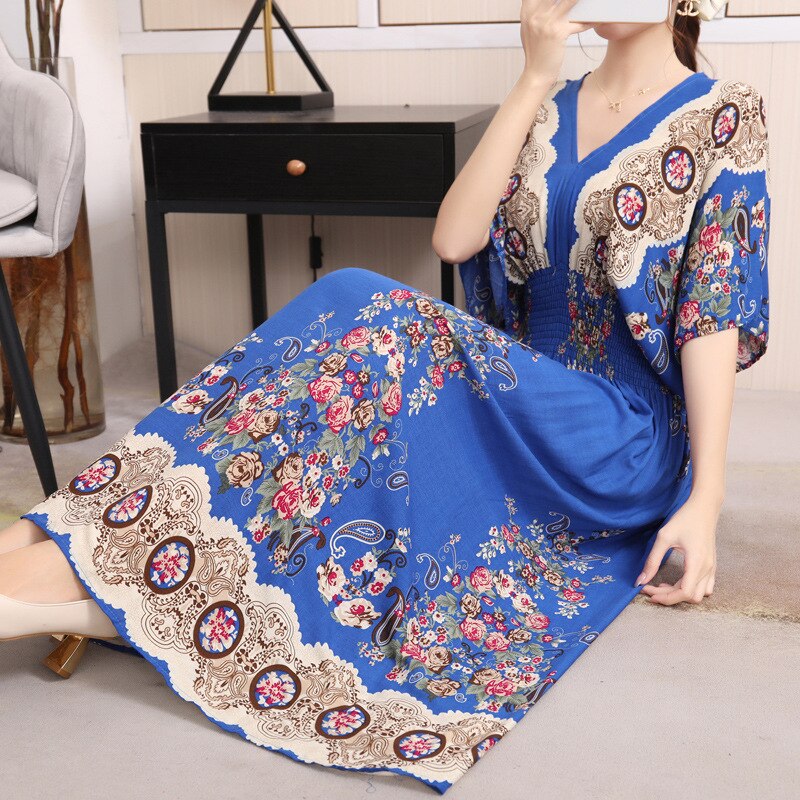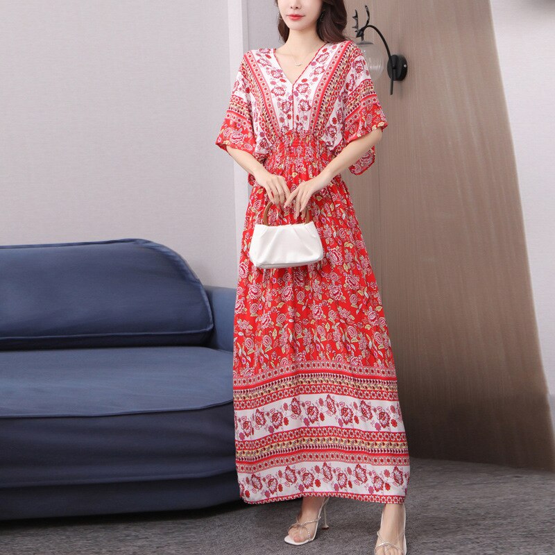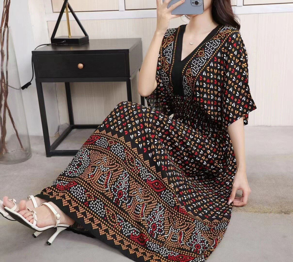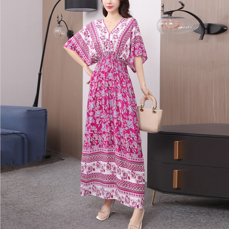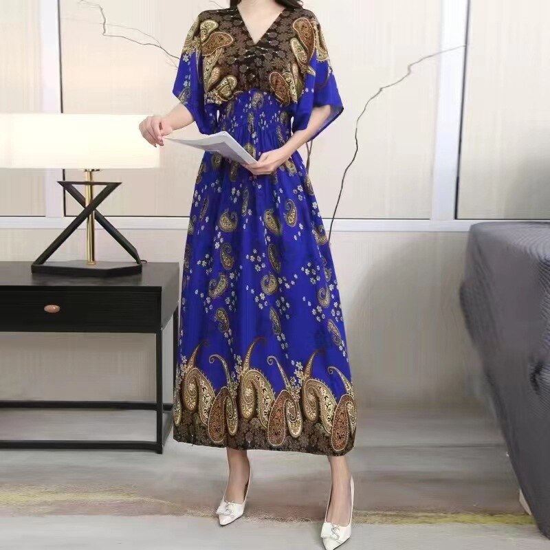 • Summer Maxi Dress Soft Half Sleeves Vintage Style Ethnic Summer Vacation Lady Summer Dress Lady Summer Dress Daily Wear