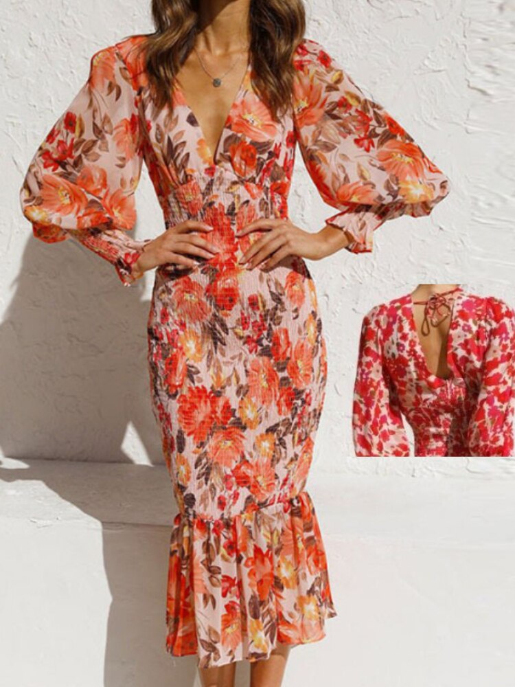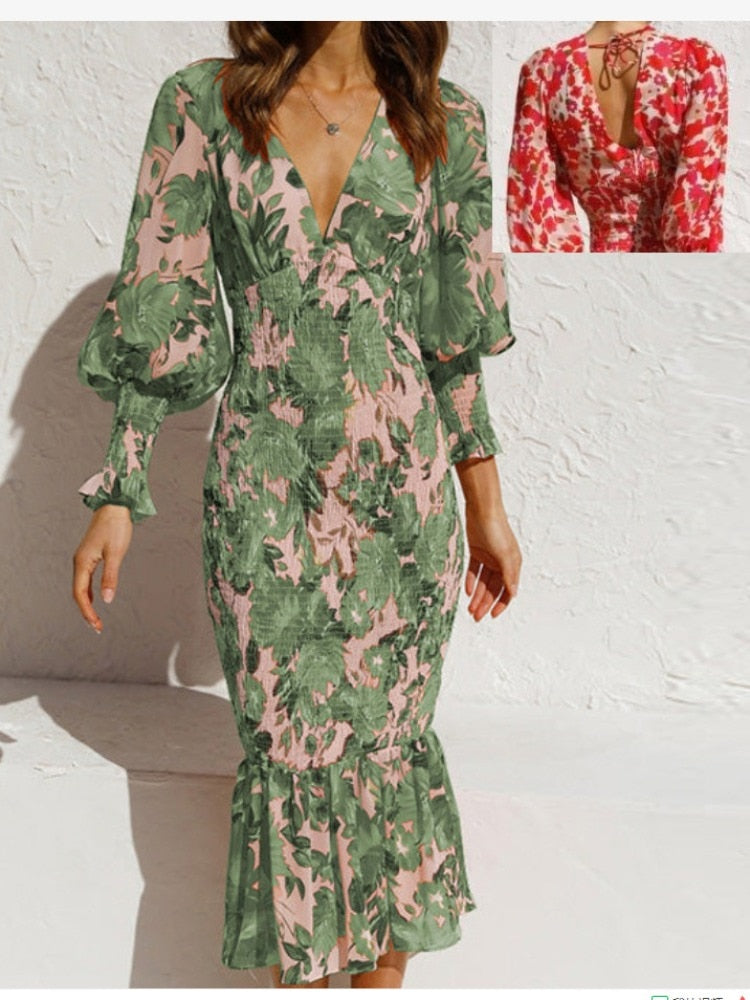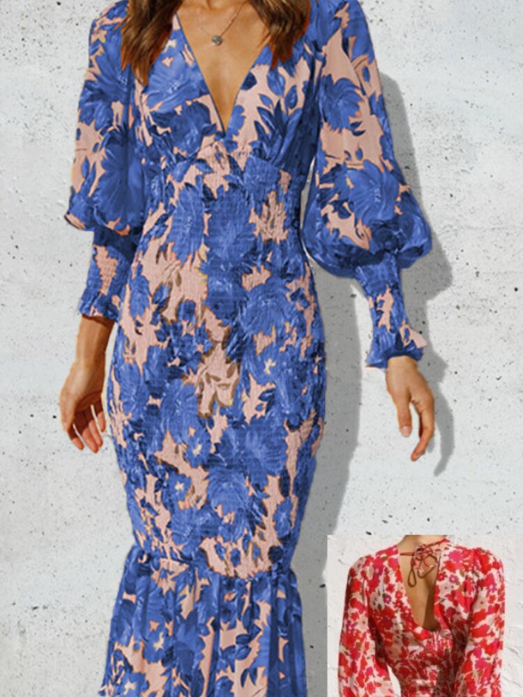 • New In Summer Women's Dress Lantern Sleeve Printed Evening Women Dress Elegant Party Long Formal Occasion Dresses for Women 2023