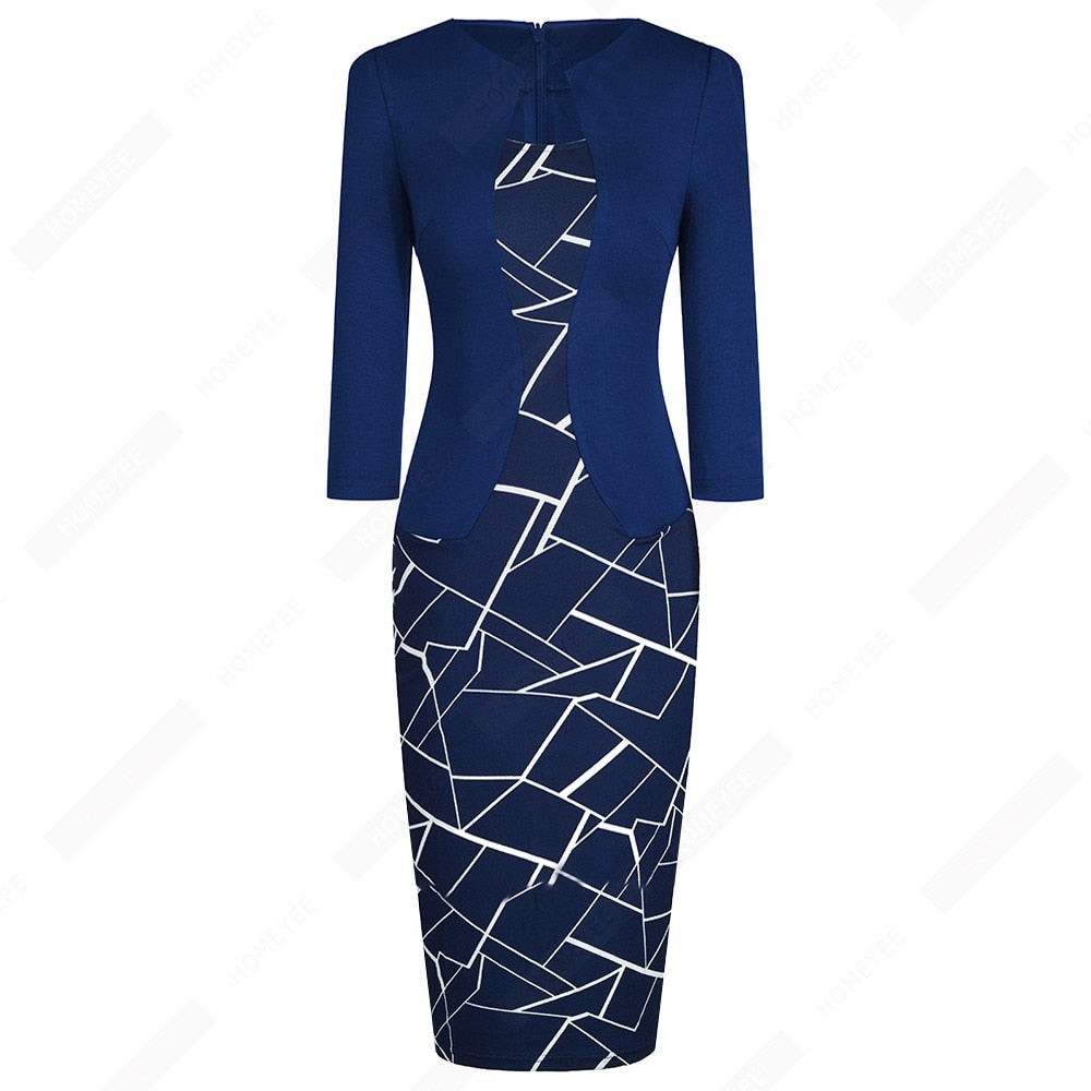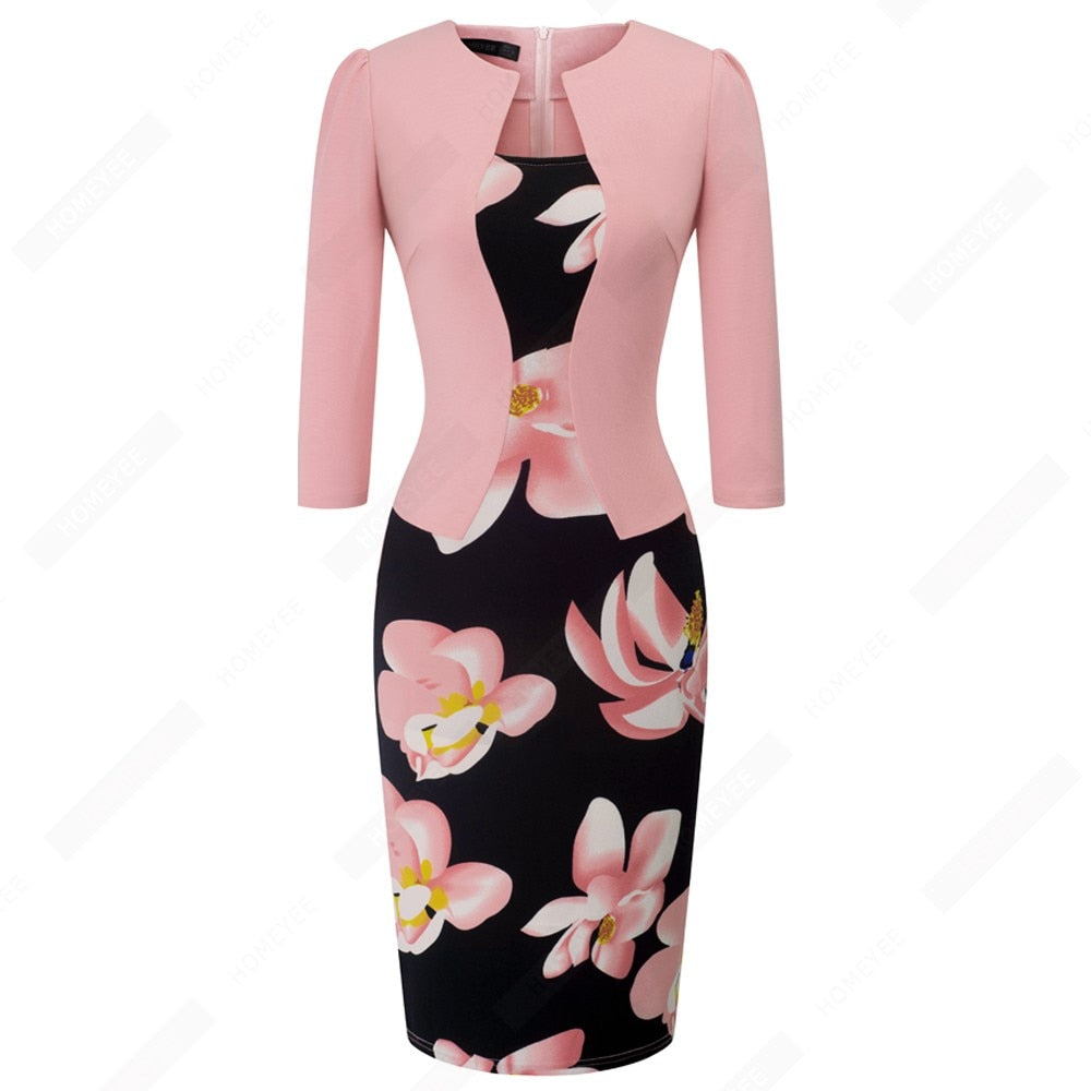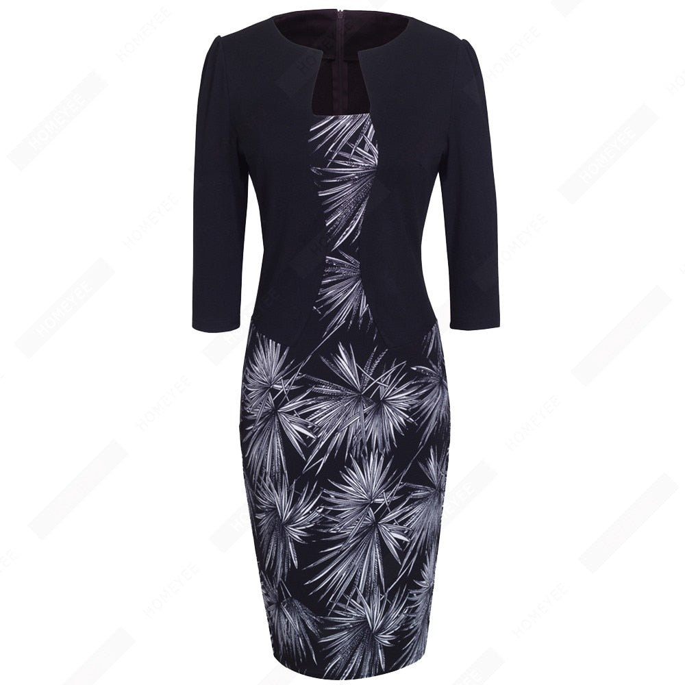 Women Autumn Elegant One-piece Formal Business Floral Printed Vintage Lady Work Office Bodycon Pencil Dress EB237