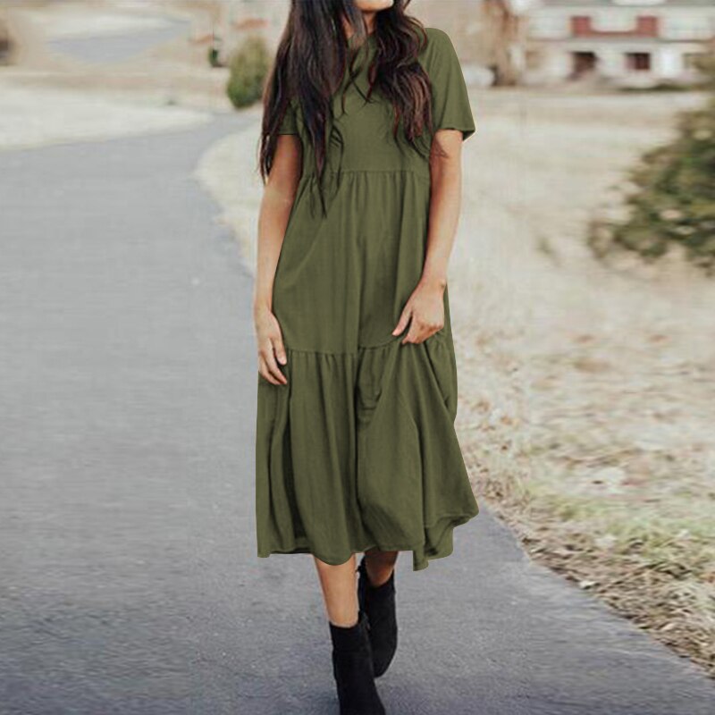 • Women Elegant Ruffles Dress Summer Sundress Casual Short Sleeve Solid Party Vestido ZANZEA Vintage Kaftan Dresses Femme Robe