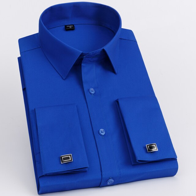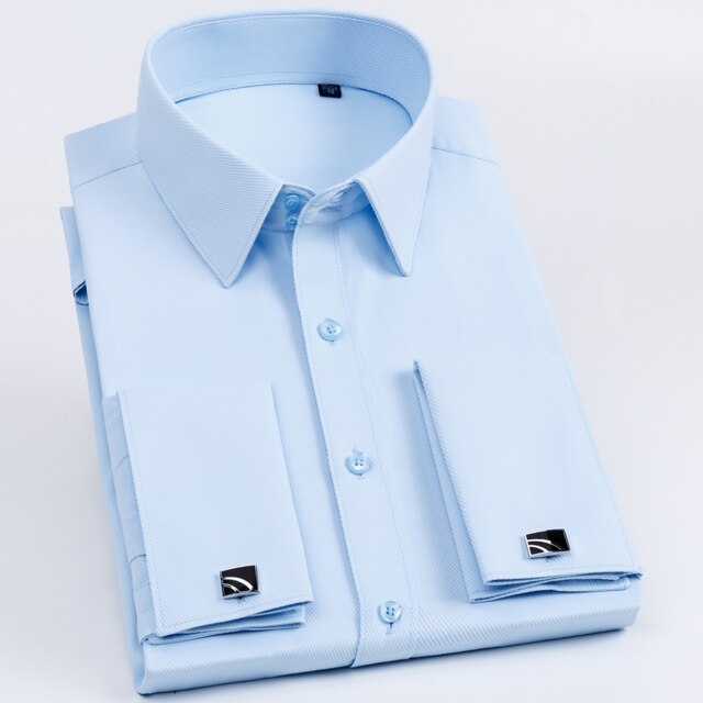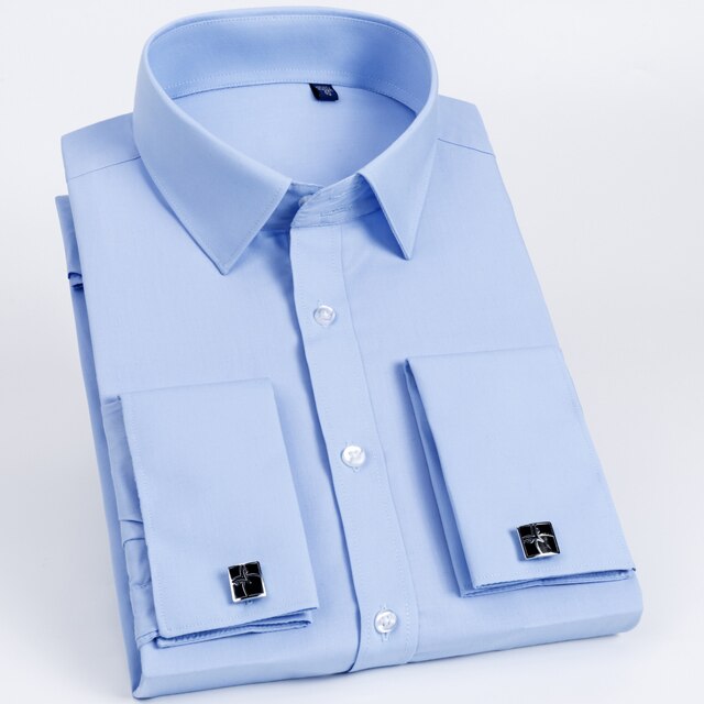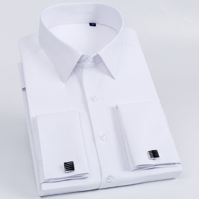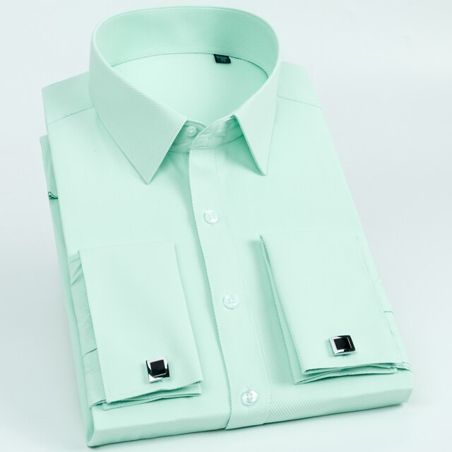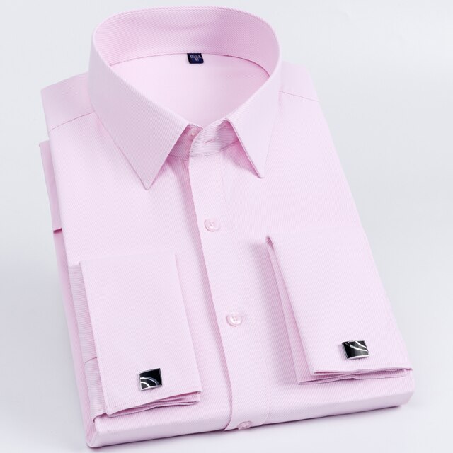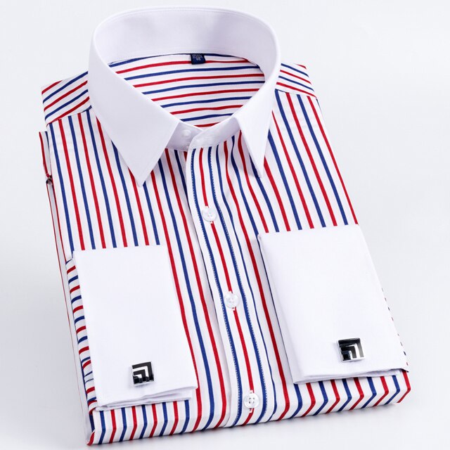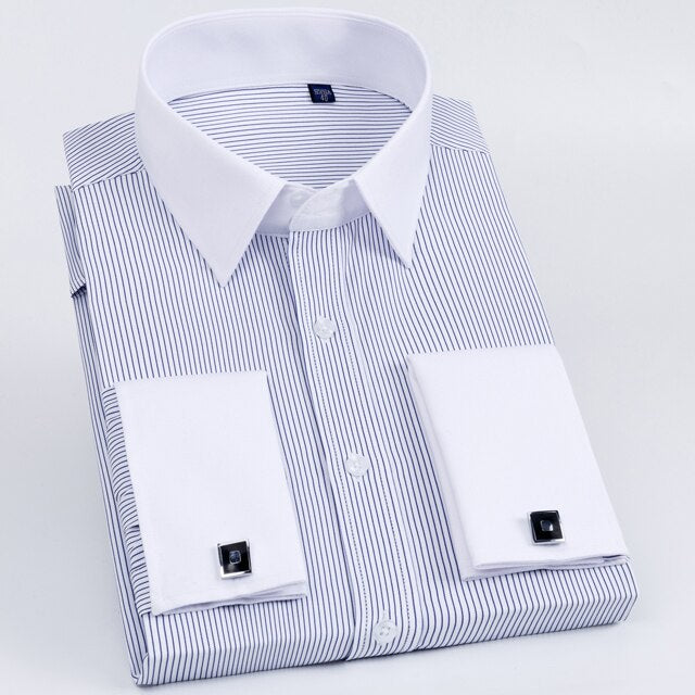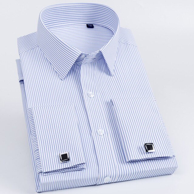 • Men's Classic French Cuff Long Sleeve Stripe Dress Shirt Without Pocket Formal Business Standard-fit Wedding Party Social Shirts