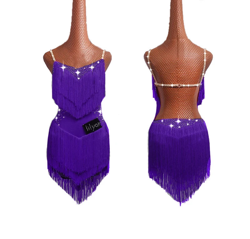 • Latin Dance Dress Competition Costumes Skirt Performing Rhinestones Adult Children Tassel Various Color Red White