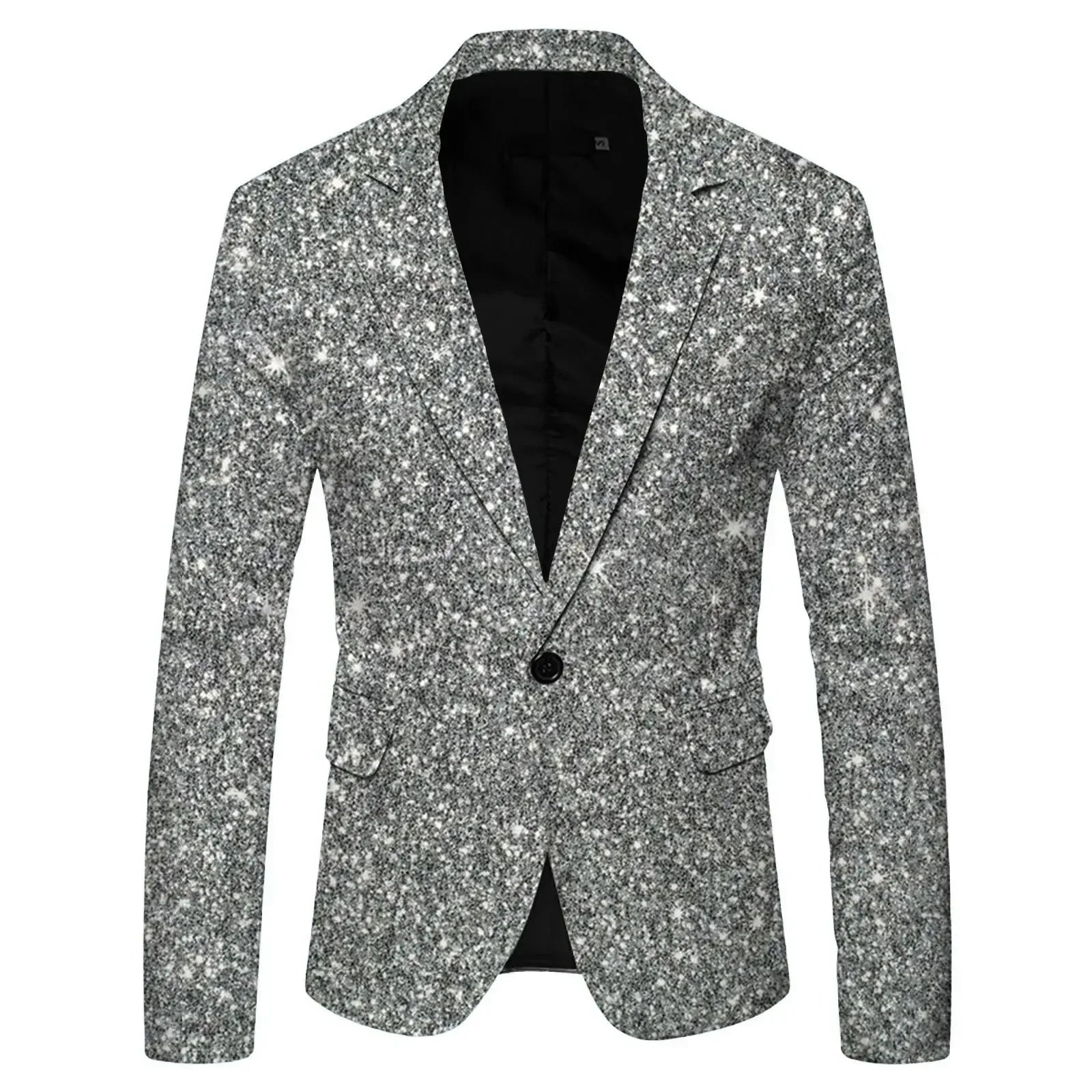 • Shiny Sequin Men's Suit Jacket, Stage Performance Coat, White Silver Blue Red Purple Blazers V-neck Single Button S M L XL XXL