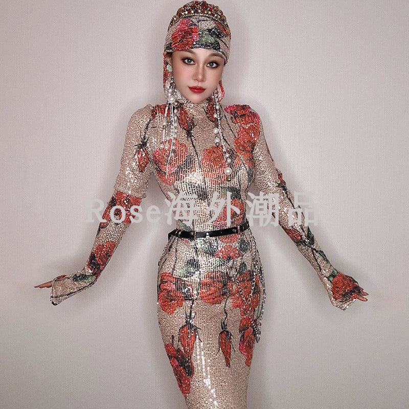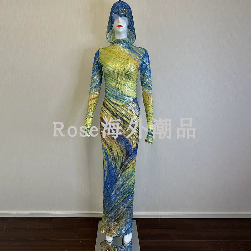 Summer New Performance Dress Nightclub Club Temperament Slim dress Music Festival Model Catwalk Banquet Party Watch