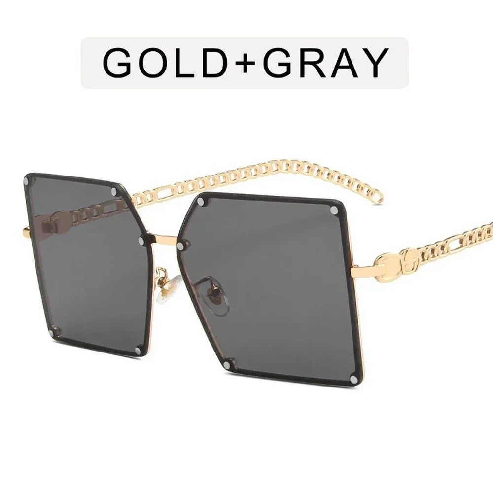 2025 New Fashion Oversize Gradient Sunglasses For Women Vintage Alloy Chain Frame Rivet Square Sun Glasses Female Elegant Shades