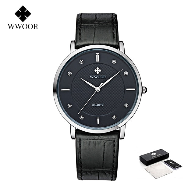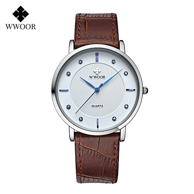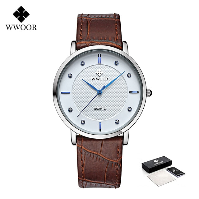 WWOOR Clearance Best Selling Men Quartz Wristwatches Luxury Brand Fashion Slim Watch Gift For Men Waterproof Brown Leather Watch