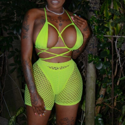 Sexy Women See-through Shorts Bikini Cover Up Stretch Mesh Fishnet Bottoms Loose Beachwear Swimwear Swimsuit Bathing Suit