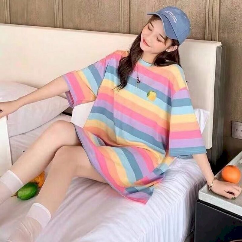 Sexy Women's Jacket Autumn Winter Rainbow Striped Long-sleeved Hoodless Shirt