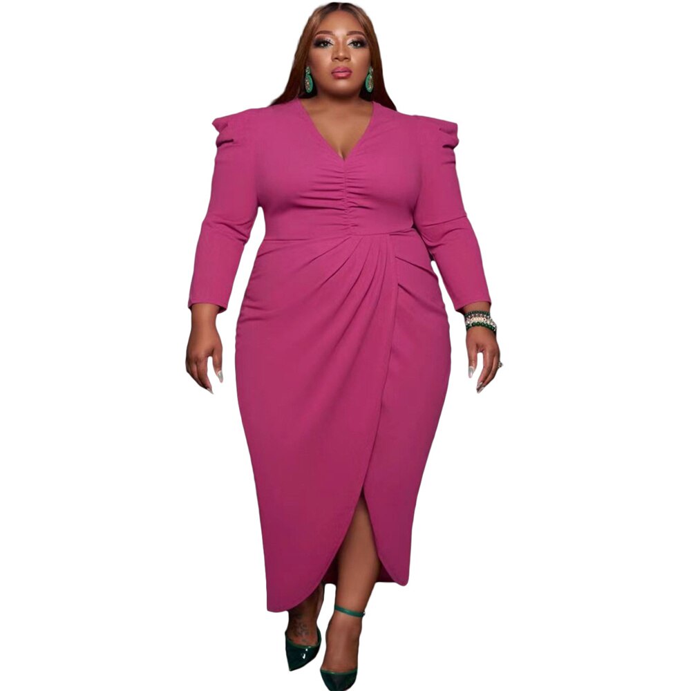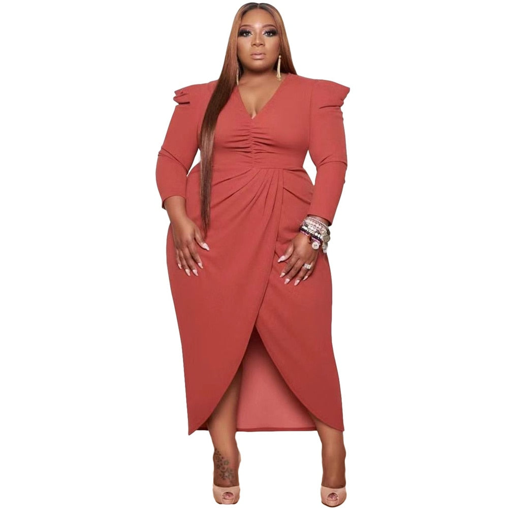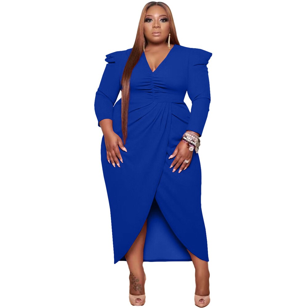 Sexy Women's Clothing Sexy New Style Long Sleeve V Neck Urban Plus Size Evening Dress