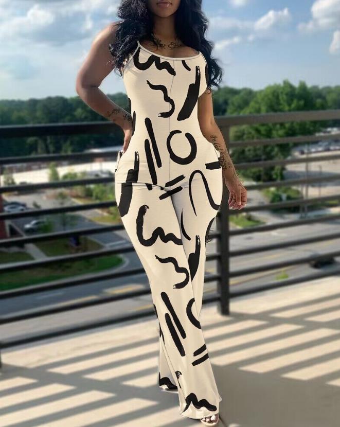 Sexy Women's Jumpsuit Summer Fashion Tie Dye Print U Neck Sleeveless Casual Pocket Design