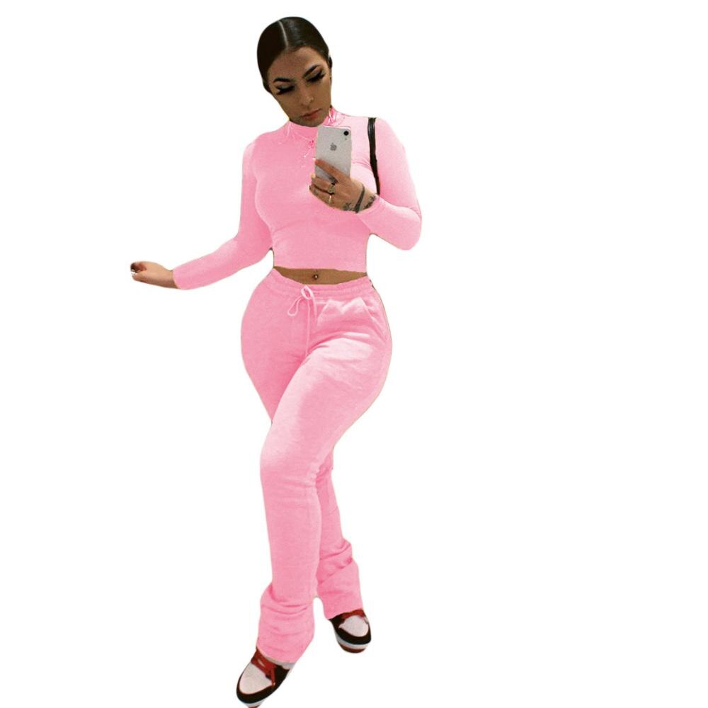 Sexy Women Workout Two Piece Set Casual Solid Long Sleeve Crop Tops T-Shirt Leggings