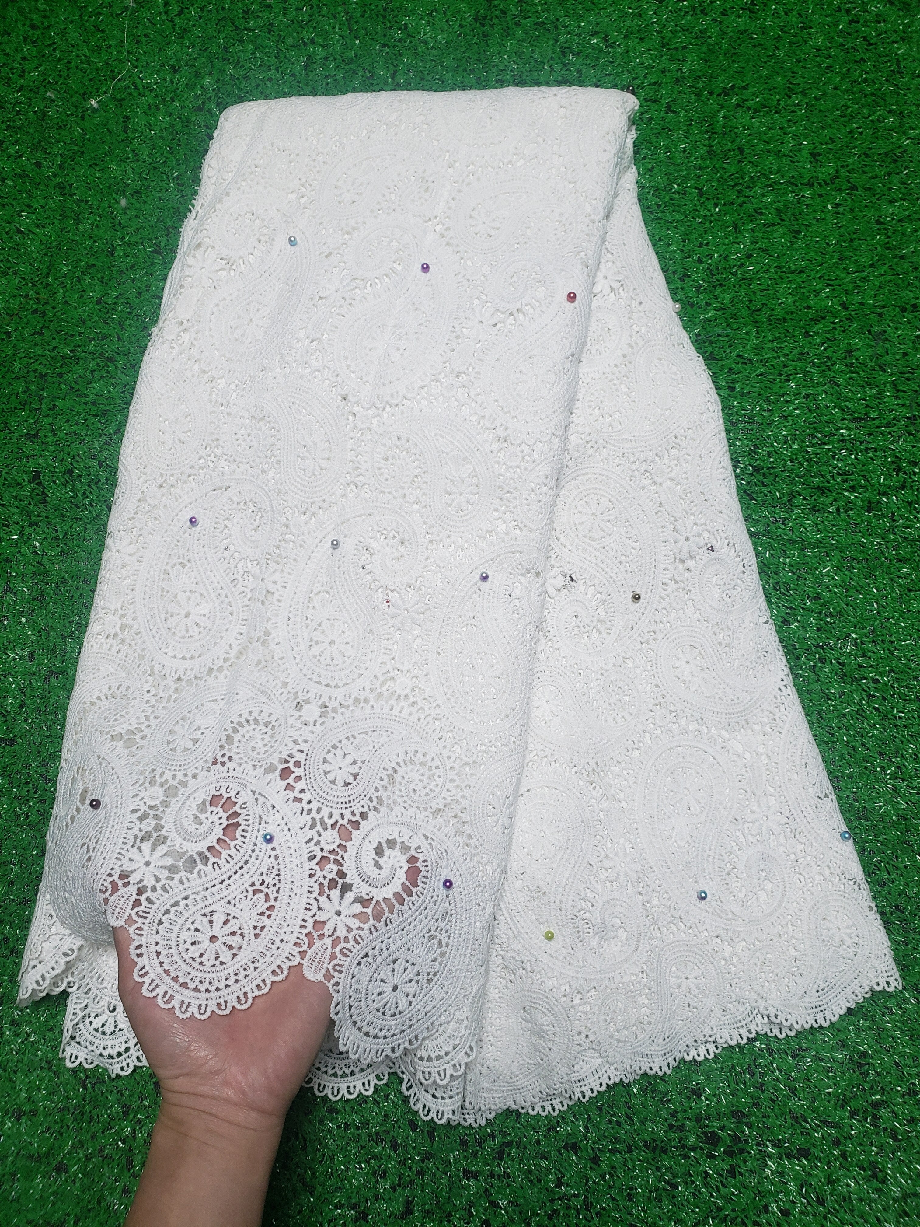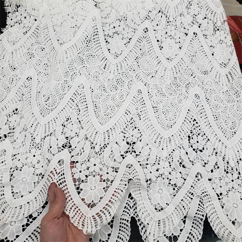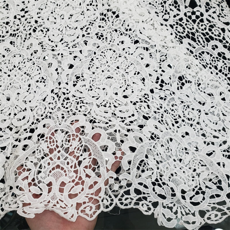 SPECIFICATIONSshipping time: Within 5-12days after your paymentlength: 5yards in length(About4.55M)Width: 120cmWeight: About 1.5kgUsed: For Wedding Party Dress EctOrigin: Mainland ChinaOccasion: WeddingFabric style: Guipure Cord LaceCN: Guangdong