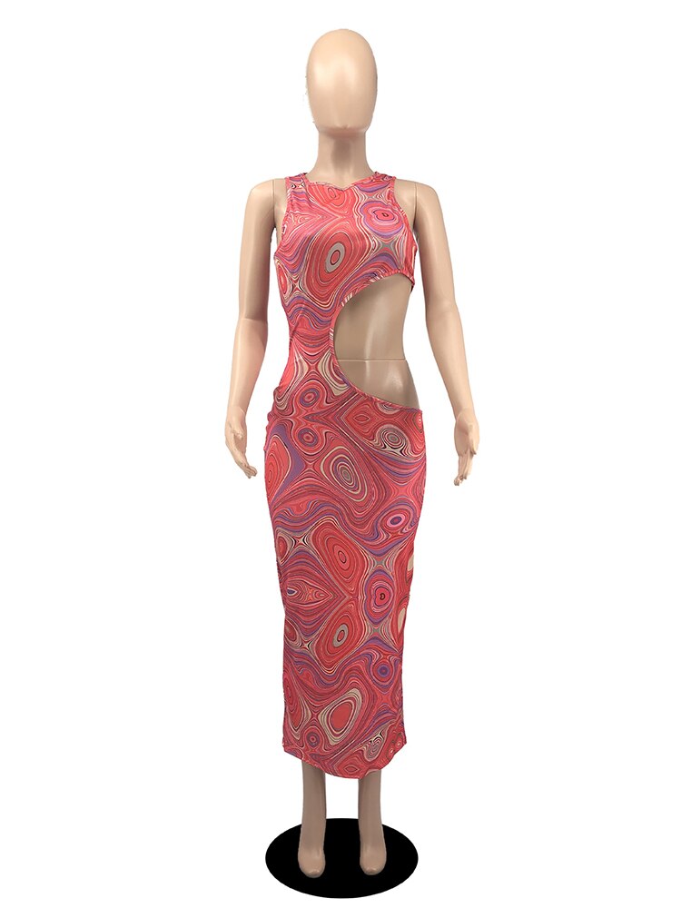 Splicing Fishnet Backless Sleeveless Skinny Maxi Dress Elegant Women Evening Party Dresses Print Bodycon Sheath Clubwear Robes