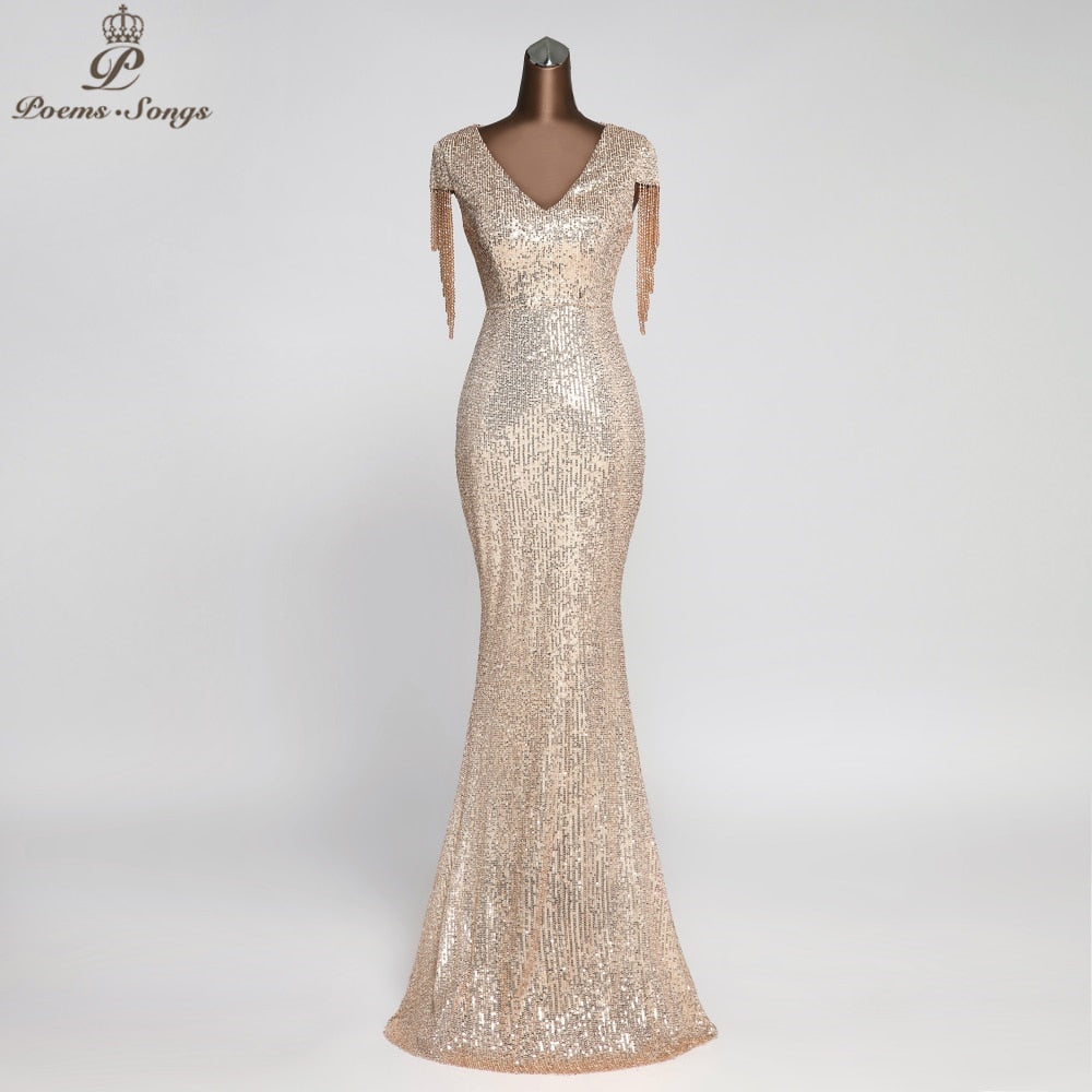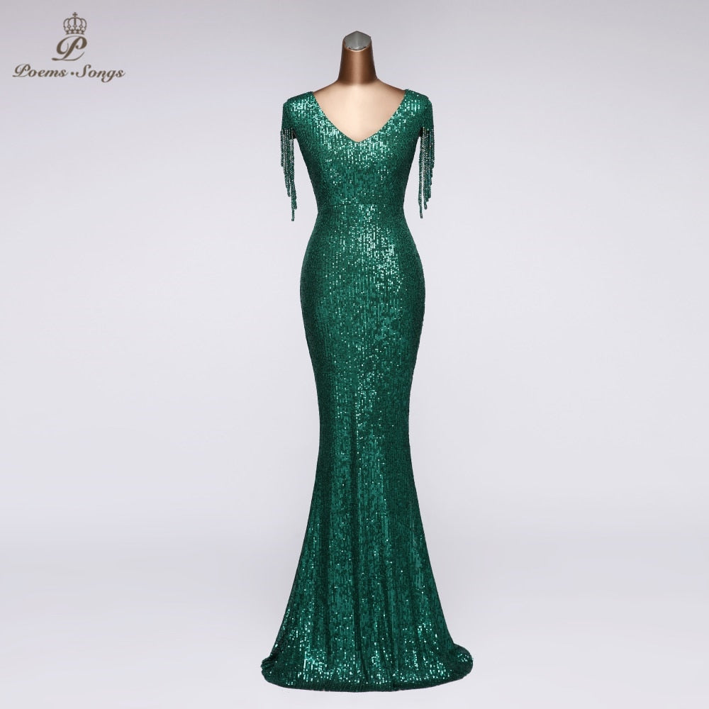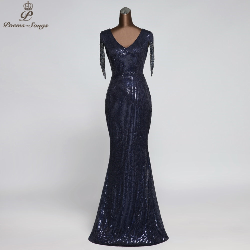 • Elegant Sequin Evening dresses party dresses robe de soiree vestidos evening gowns vestido longo festa vintage dress