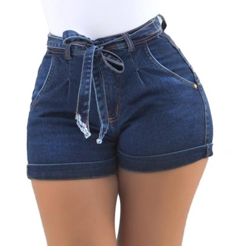 • Fashion High Waist Denim Shorts Women Summer Skinny Belted High Waist Washed Jeans Women Shorts