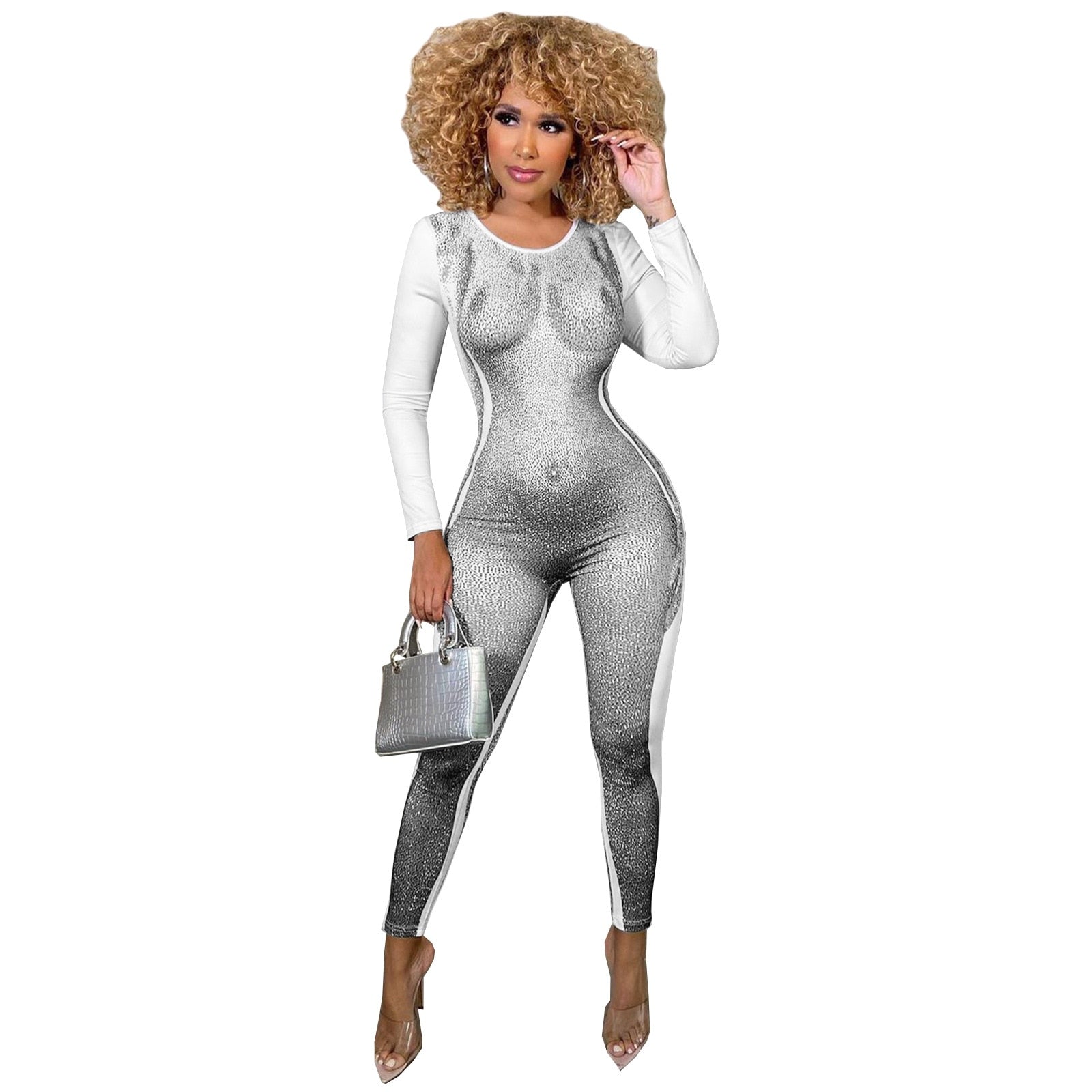 • Fashion 3D Body Print Design Rompers Women Sexy Sporty O Neck Long Sleeve Leggings Skinny Club Party Jumpsuit Overalls Clothes
