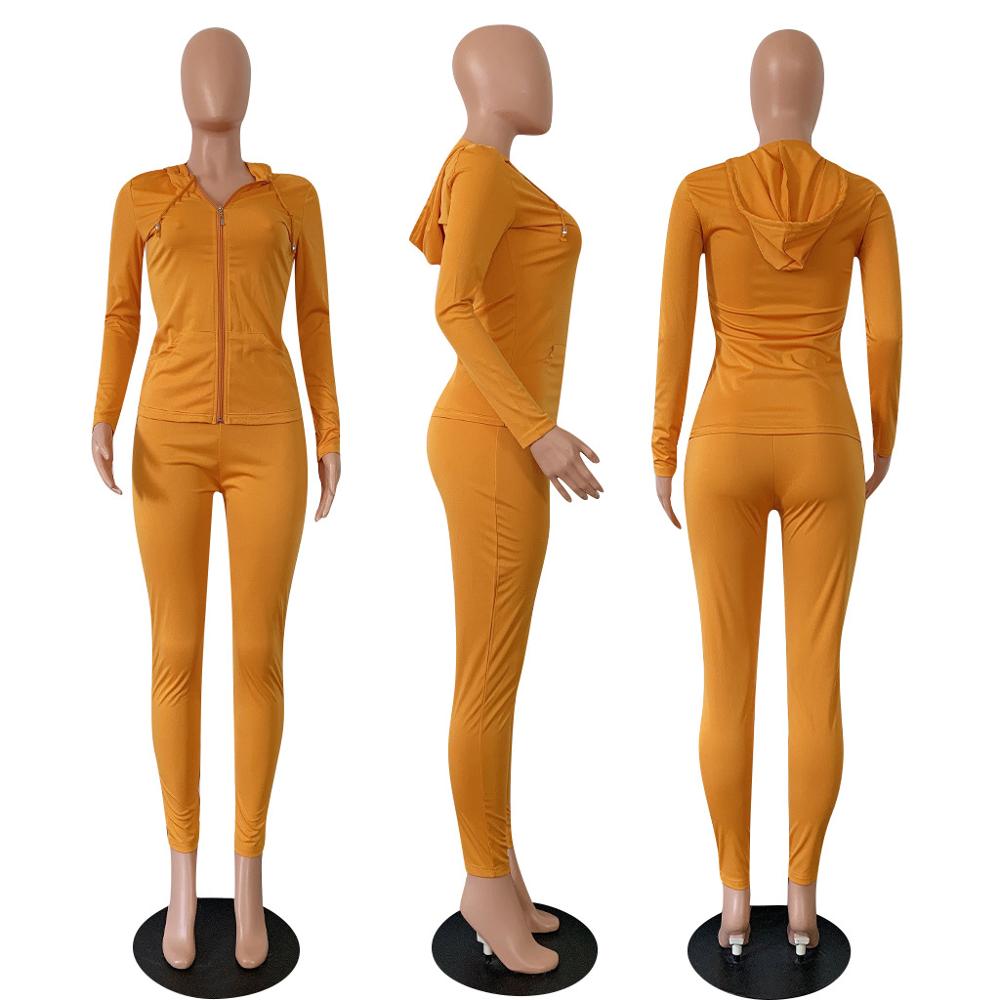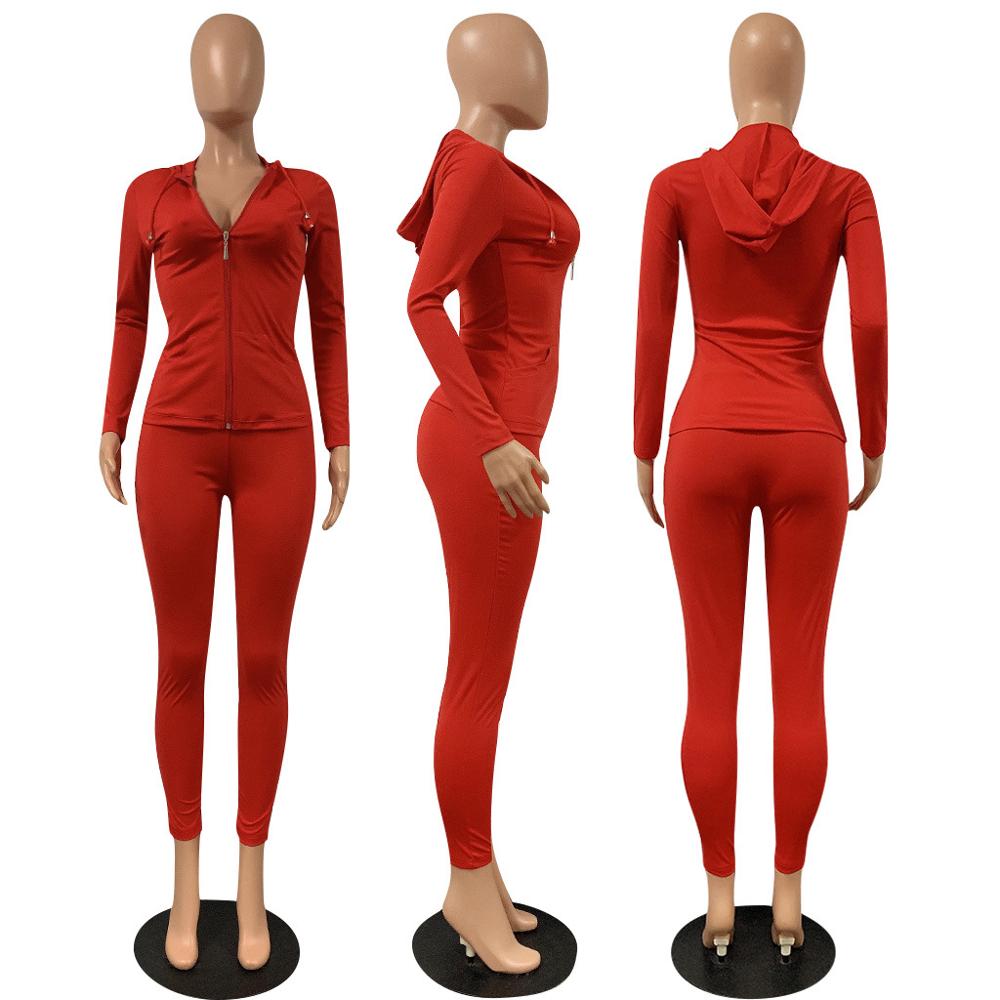 • Fashion Hooded Two Piece Set Jogging Femme Zipper Top + Pants Suit Sportwear Tracksuit Women Outfits Solid 7 Color