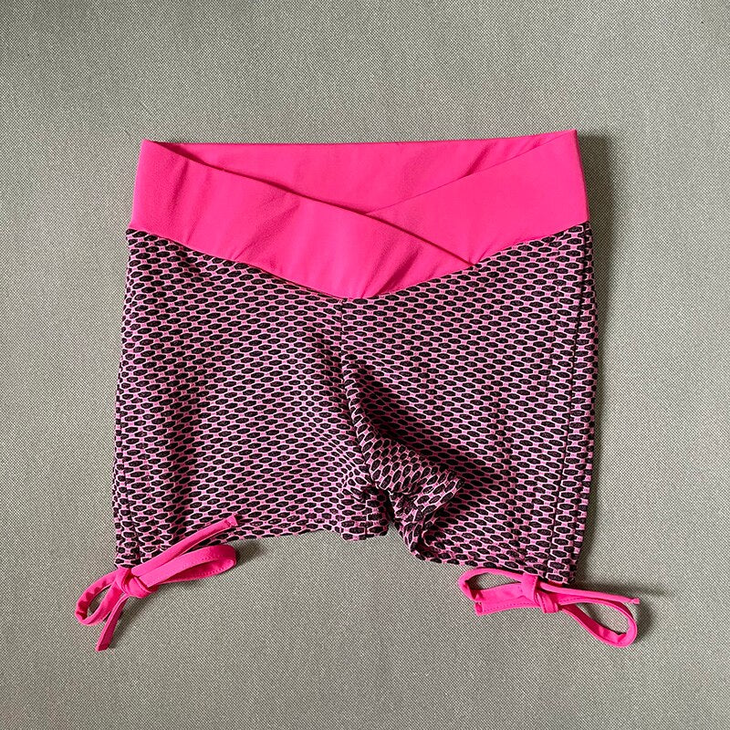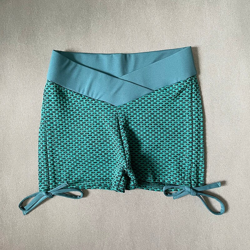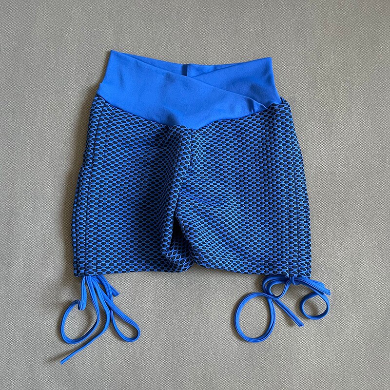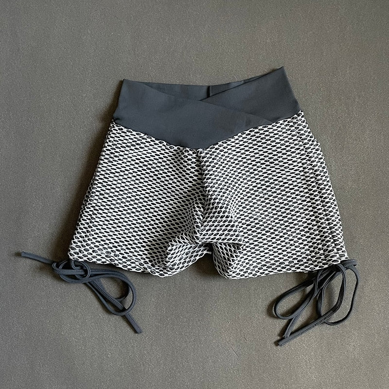 • High Waist Seamless Yoga Shorts Women Fitness Push Up Tight Sports Leggings Honeycomb Pattern Drawstring Running Workout Shorts