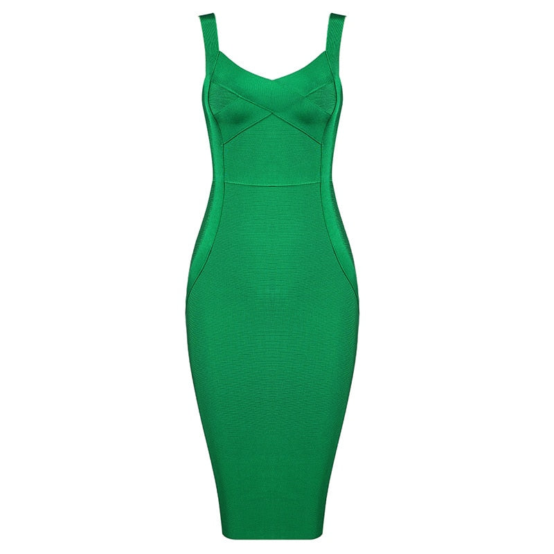 • High Quality Pink Green Red Bodycon Knee Length Rayon Bandage Dress Evening Party Dress Vestidos