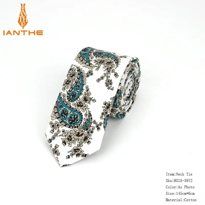 Brand New 100% Cotton Men's Paisley Print Neck Ties For Men Necktie Narrow Slim Skinny Cravate Narrow Flower Neckties Corbatas