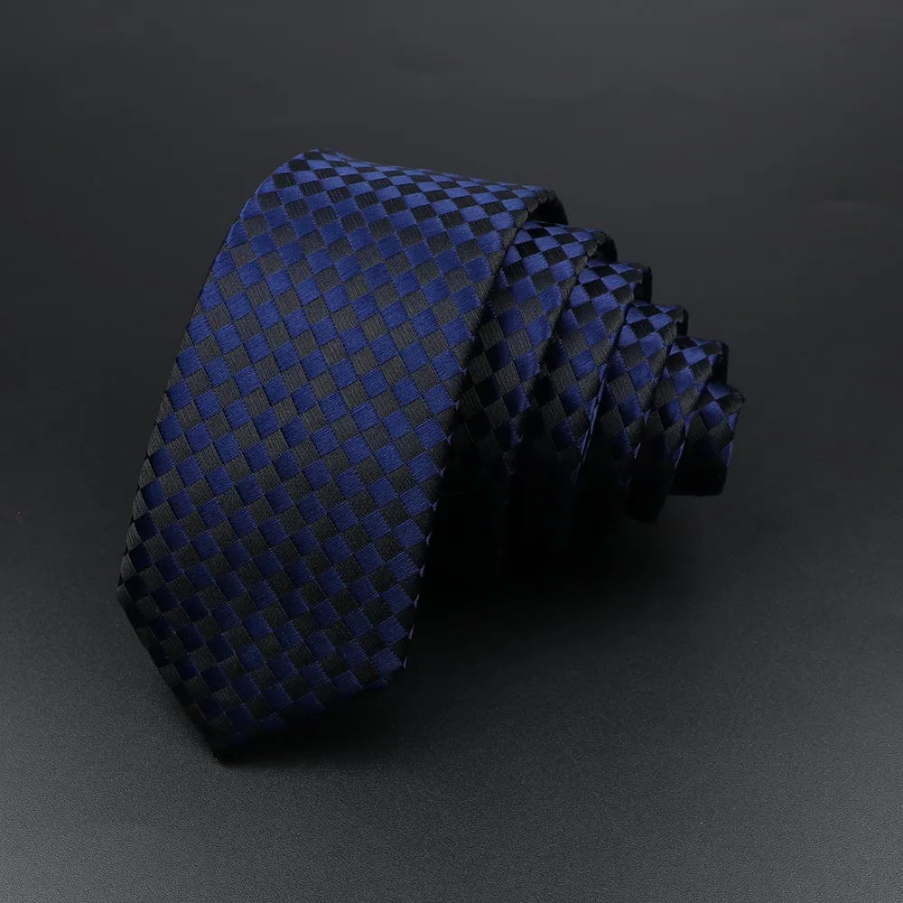 Men's Classic Skinny Stripe Necktie Red Navy Blue Ties Jacquard Woven Solid Plaid Dots Tie Daily Wear Cravat Wedding Party Gift
