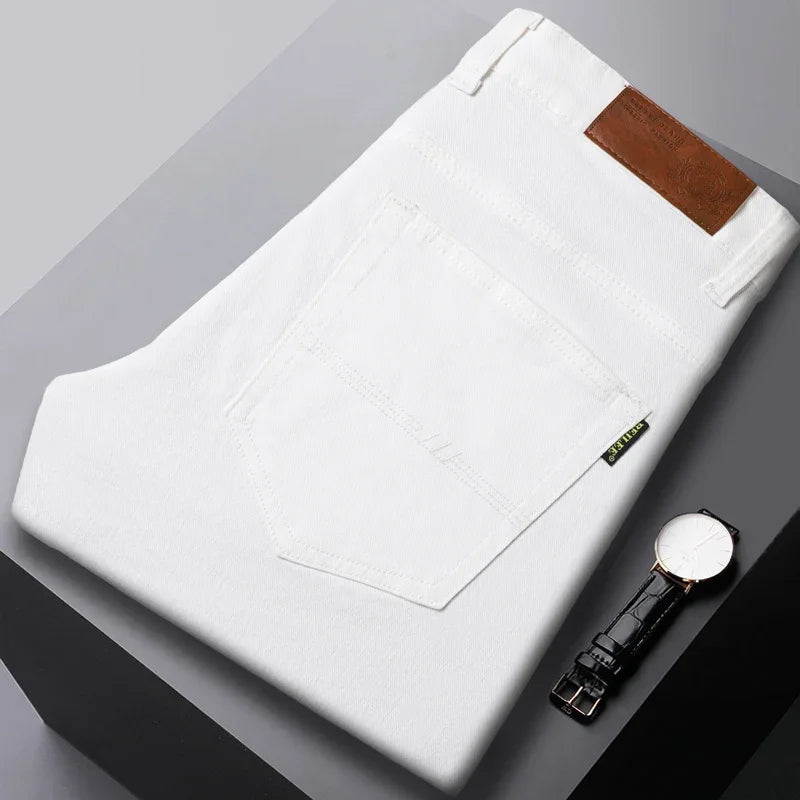 New High Quality Men's Trend Yellow Red White Jeans 2024 Spring Autumn Male High Waist Casual Pants Classic Brand Denim Trousers