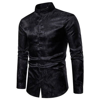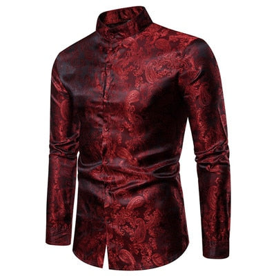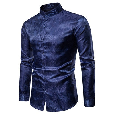 אדום כחול לבן אפור 2019 גברים מותג אופנה יוקרה כהה רקמה רזה שמלת חולצות Bussiness חתונה המפלגה זינגר שלב חולצה