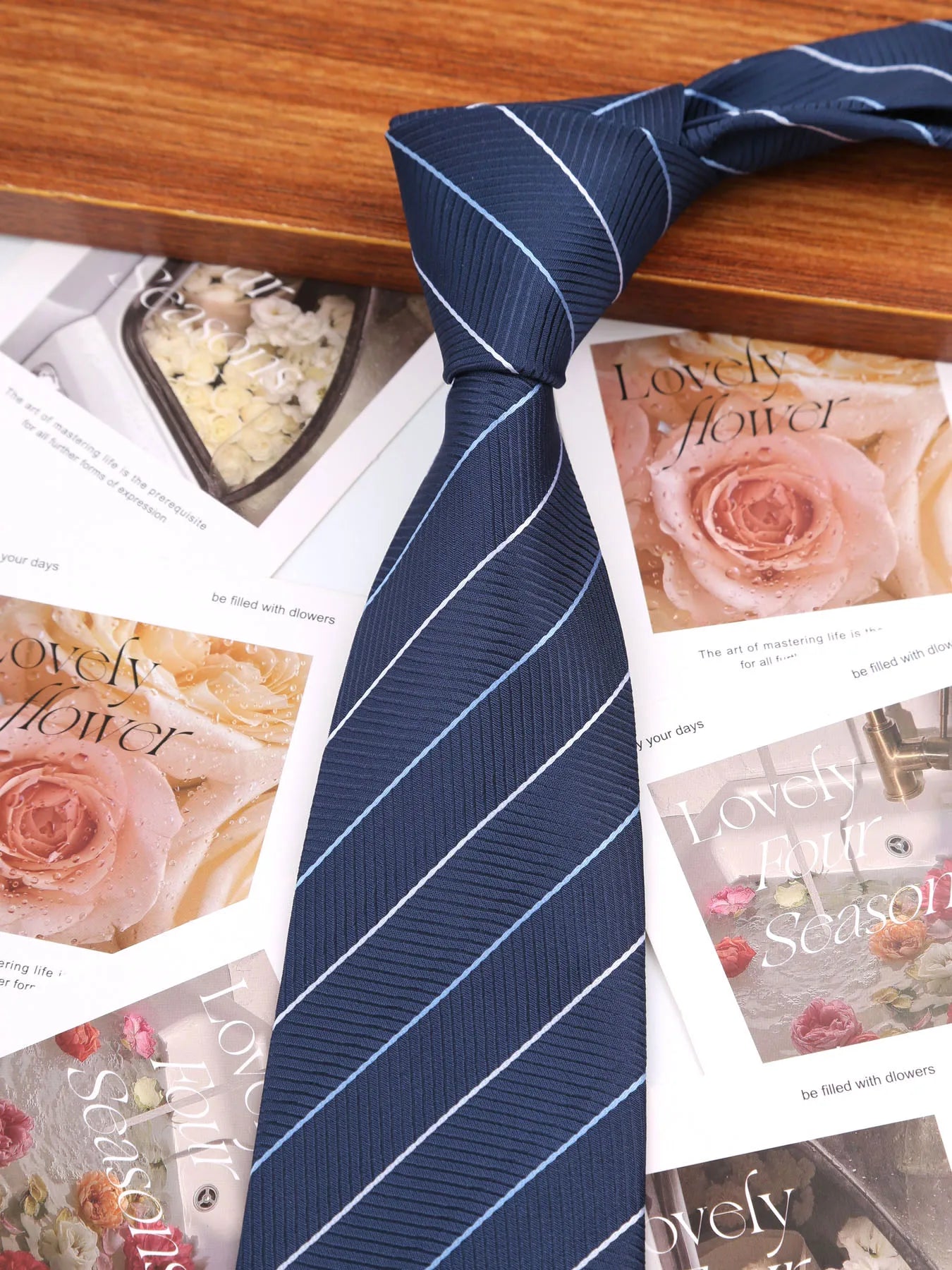 7.5/8CM Man Thin Tie Striped Necktie Men Business Formal Wedding Tie Navy Blue Black Neck Ties Fashion Shirt Necktie Accessories