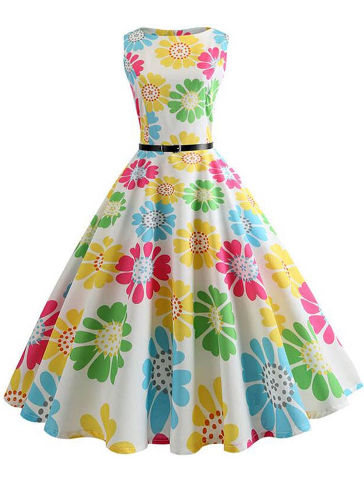 SPECIFICATIONS Waistline: empire Type: Regular Type: Skater A-Line Big Swing Dress Vestidos De Festa Style: Elegant vintage casual dress women Style: vintage Sleeve Style: Regular Sleeve...