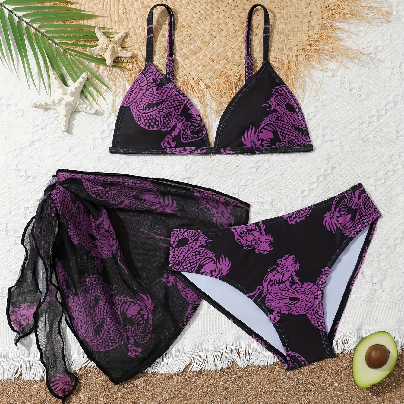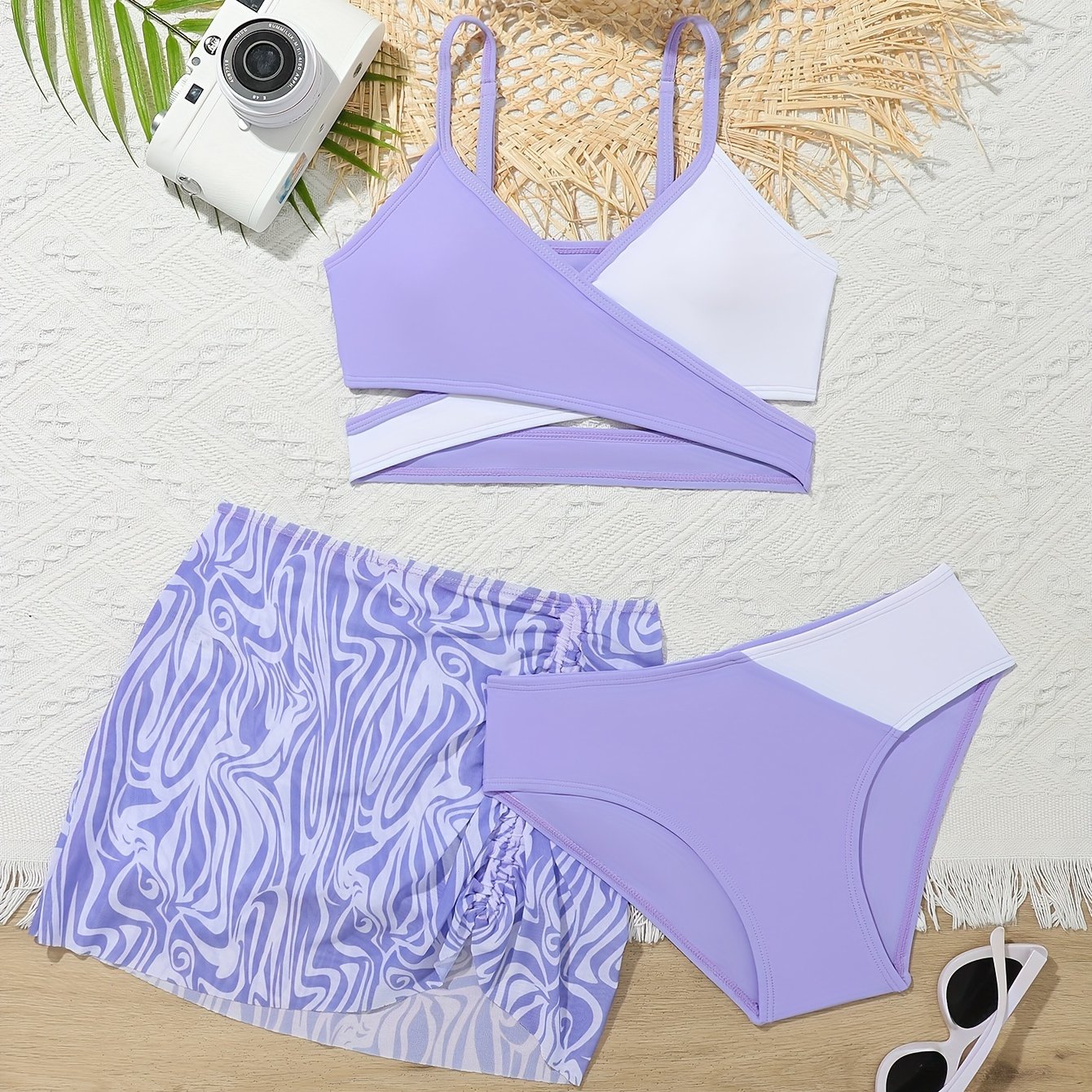 3pcs Fashionable Girls Bikini Swimwear Set - Comfortable, Quick-Dry Bathing Suit with Adjustable Straps - Perfect Sun-Ready Summer Clothes for Beach Vacations