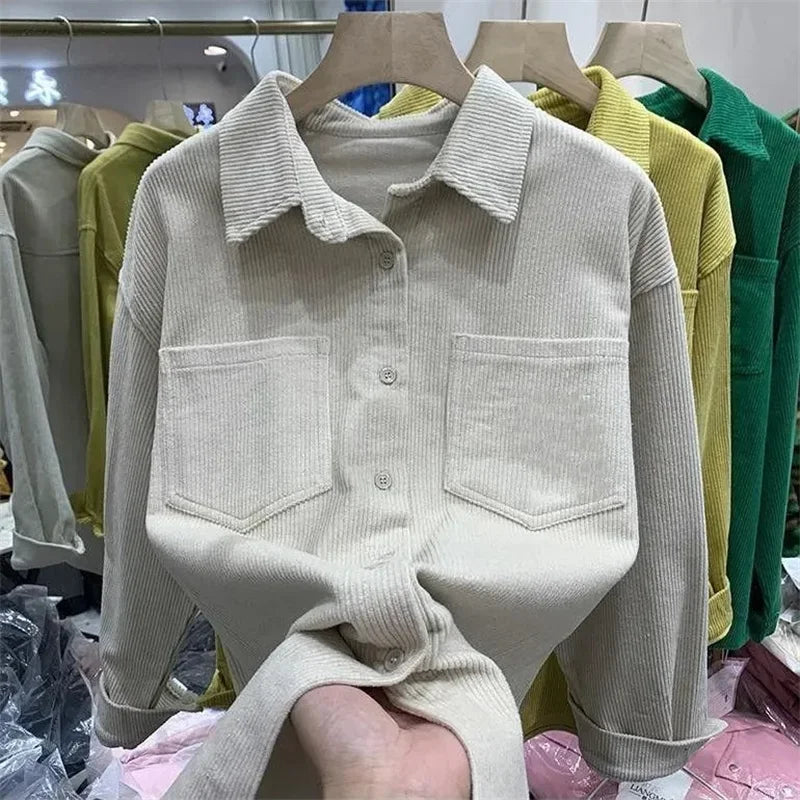 Solid Color Spring Female Corduroy Shirt Coat Women Leisure Long Sleeved Cardigan Blouse Jackets Ladies New Fashion Outwear