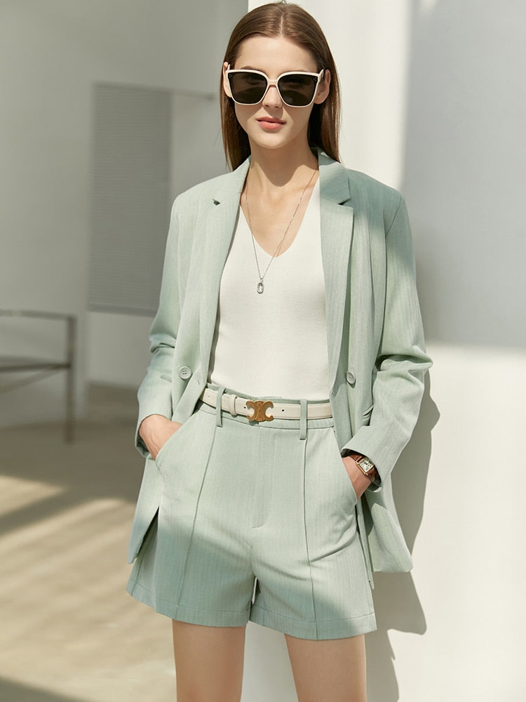Women Elegant Blazer Sets Autumn Formal Office Lady OL Shorts Top Sets Solid Top & Blazer Coat & Shorts Sets