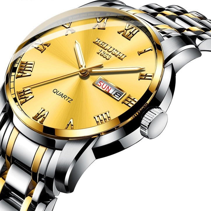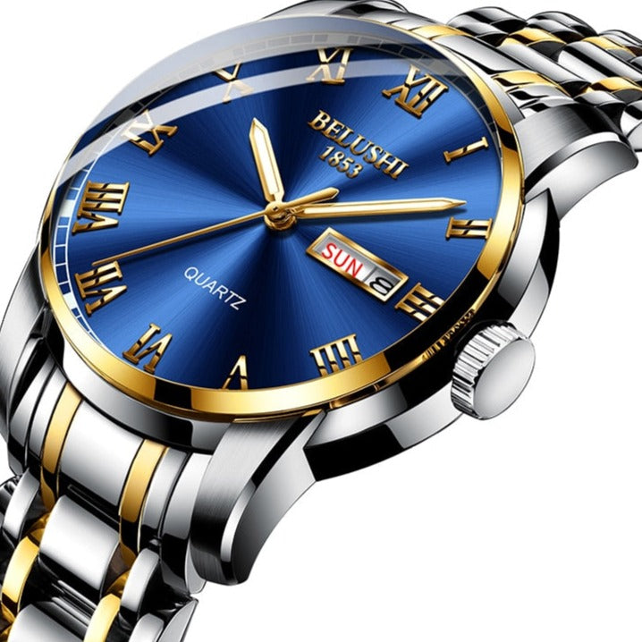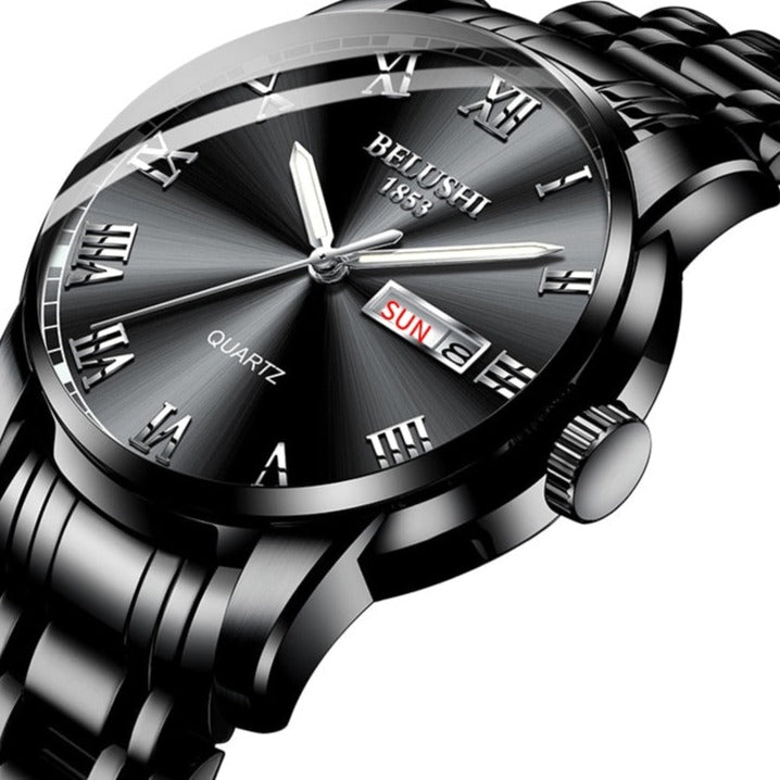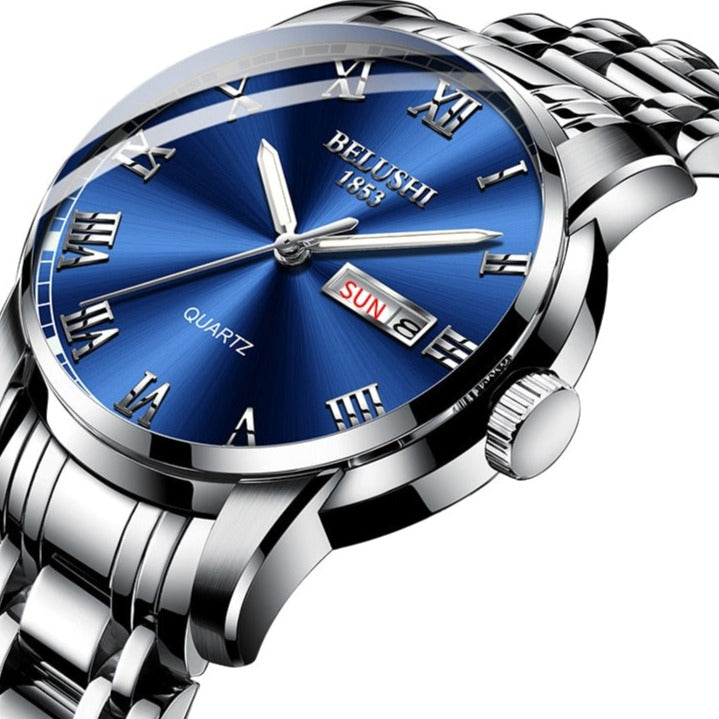 BELUSHI Men Stainless Steel Water Proof Luminous Luxury Sport Quartz Wrist Watch