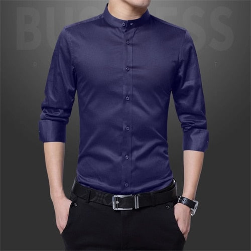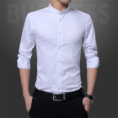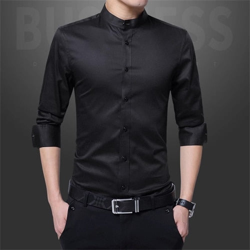 New Men Business Shirts Black/White Fashion Elegant Male Stand Collar Long Sleeve Tops Homme Wedding Party DressesSPECIFICATIONSStyle: FormalSleeve Style: RegularSleeve Length(cm): FullShirts Type: Dress ShirtsPlace Of Origin: China (Mainland)Pattern Type: SolidOrigin: Mainland ChinaModel Number: YC082-CS87Material: Polyester FiberItem Type: ShirtsGender: MENFabric Type: BroadclothCollar:... Regular price From $9.38 USDSale price From $9.38 USD Regular priceUnit price per$9.38 USDSale Sold out