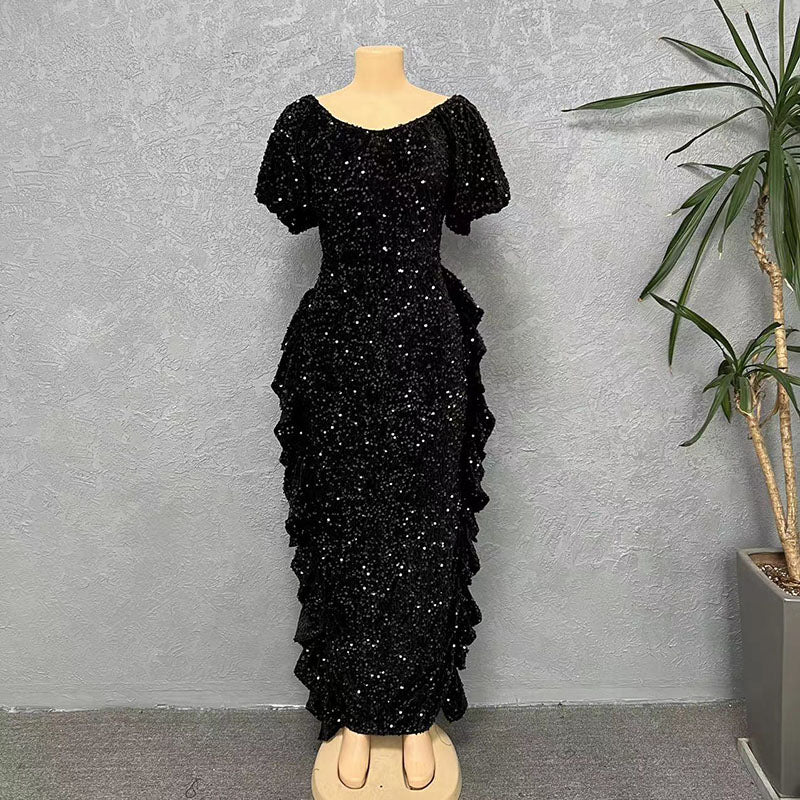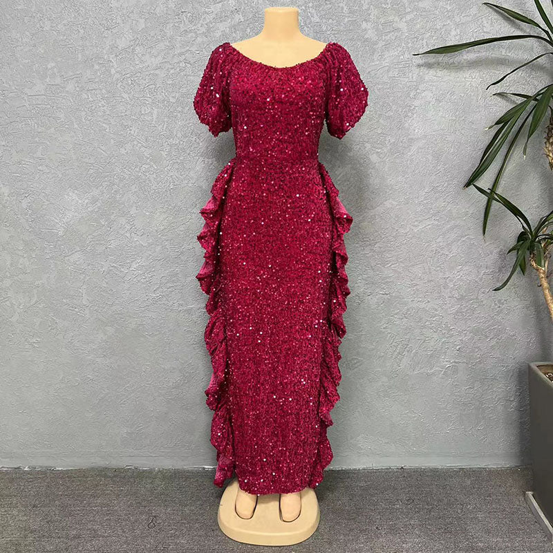 Off Shoulder Sequin Sexy Formal Party Long Dresses Women Bodycon Tiered Ruffle Elegant Evening Mix Dress NightClub Prom Gowns