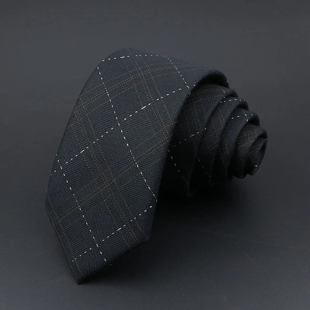 Classic Black Grey Plaid Cotton Necktie 6cm Slim Fashion Skinny Tie Men Tuxedo Suit Party Business Casual Accessory Cravat Gift