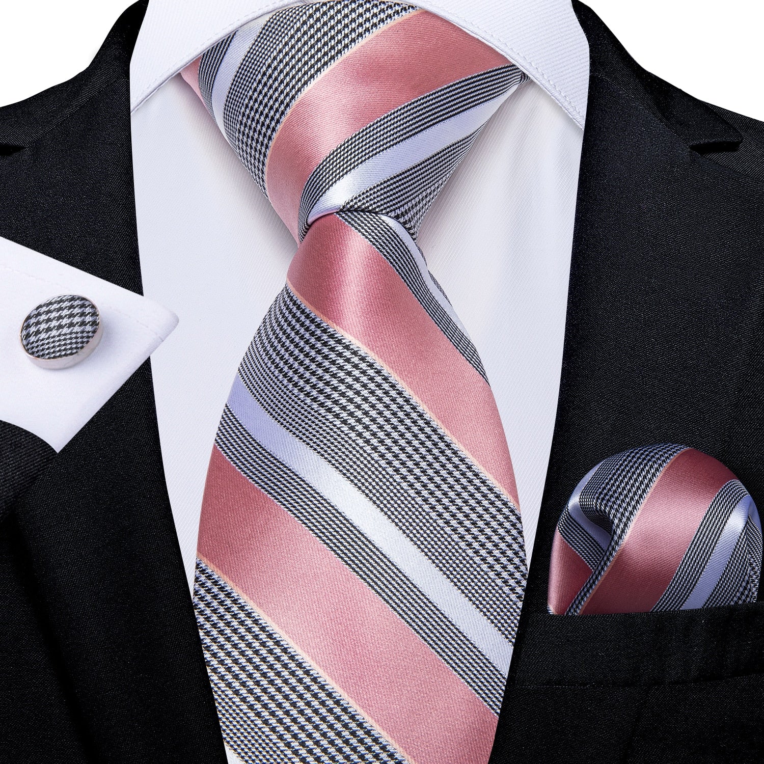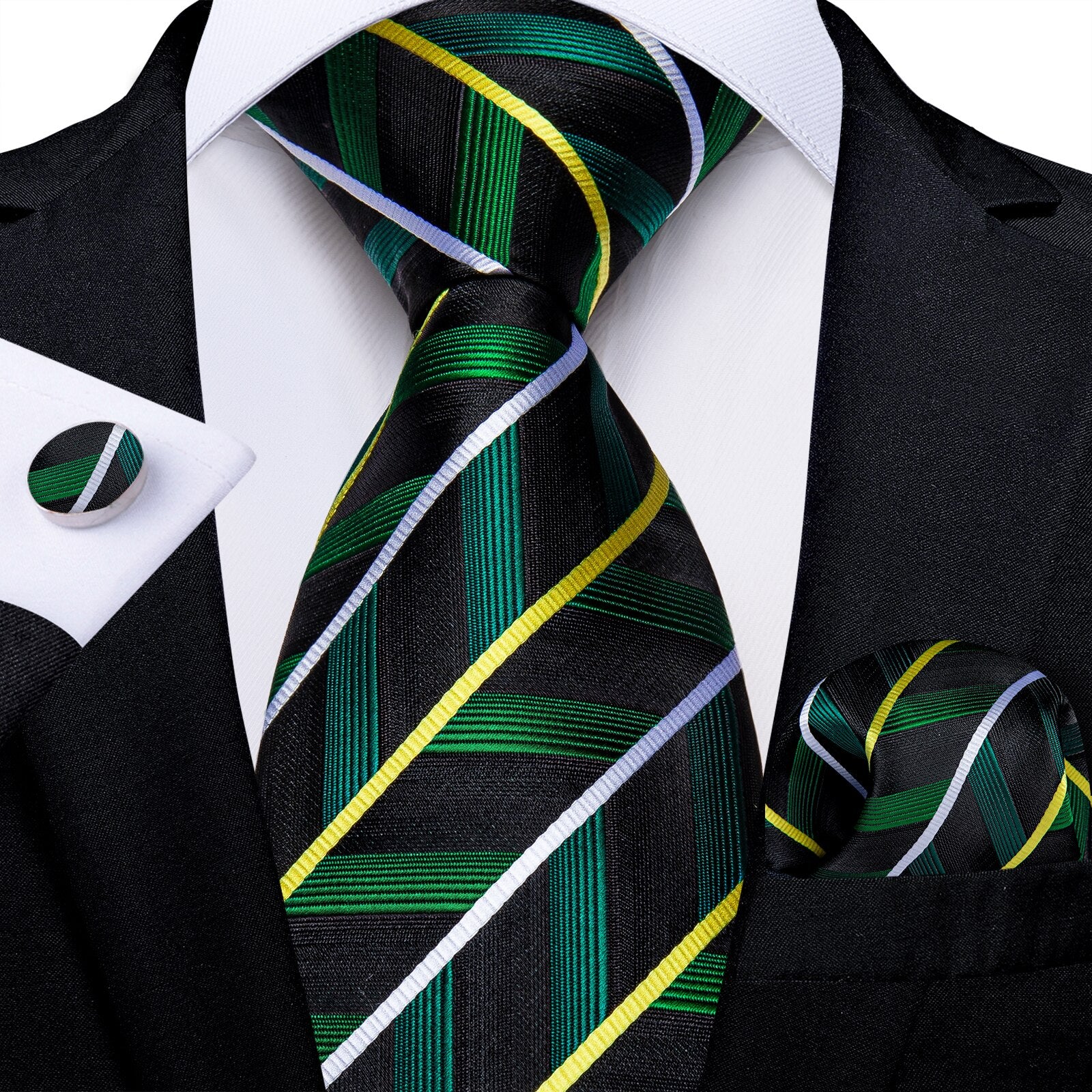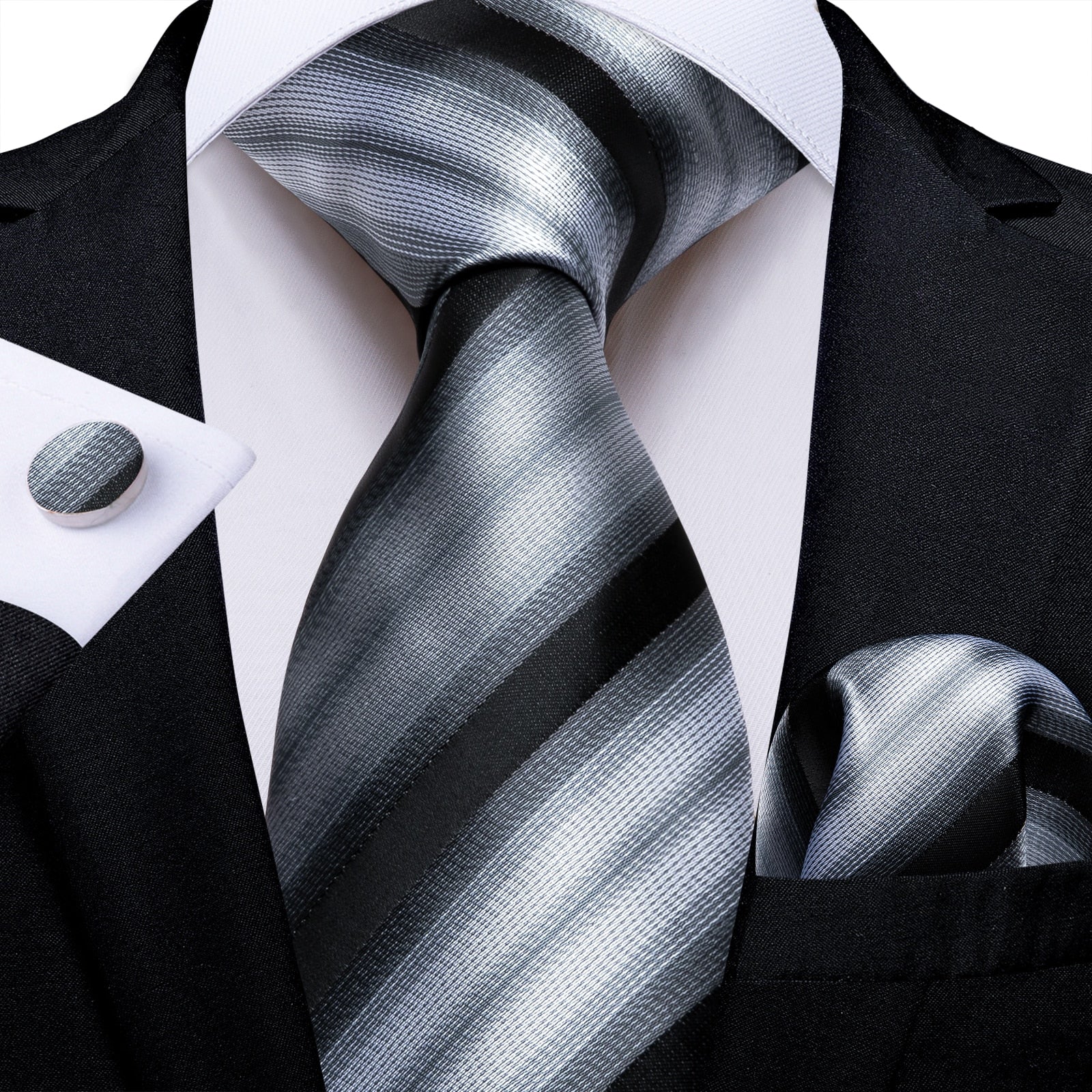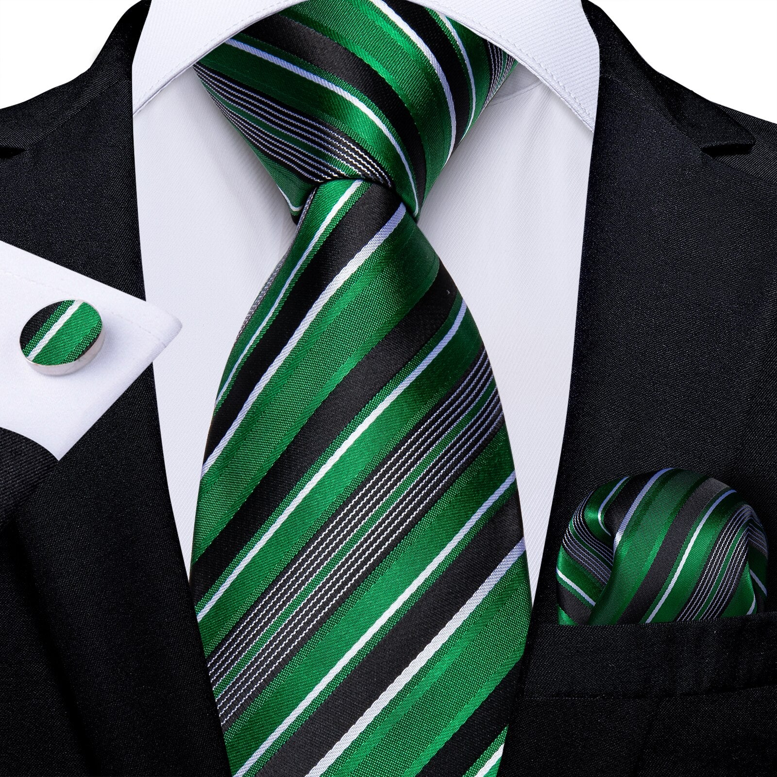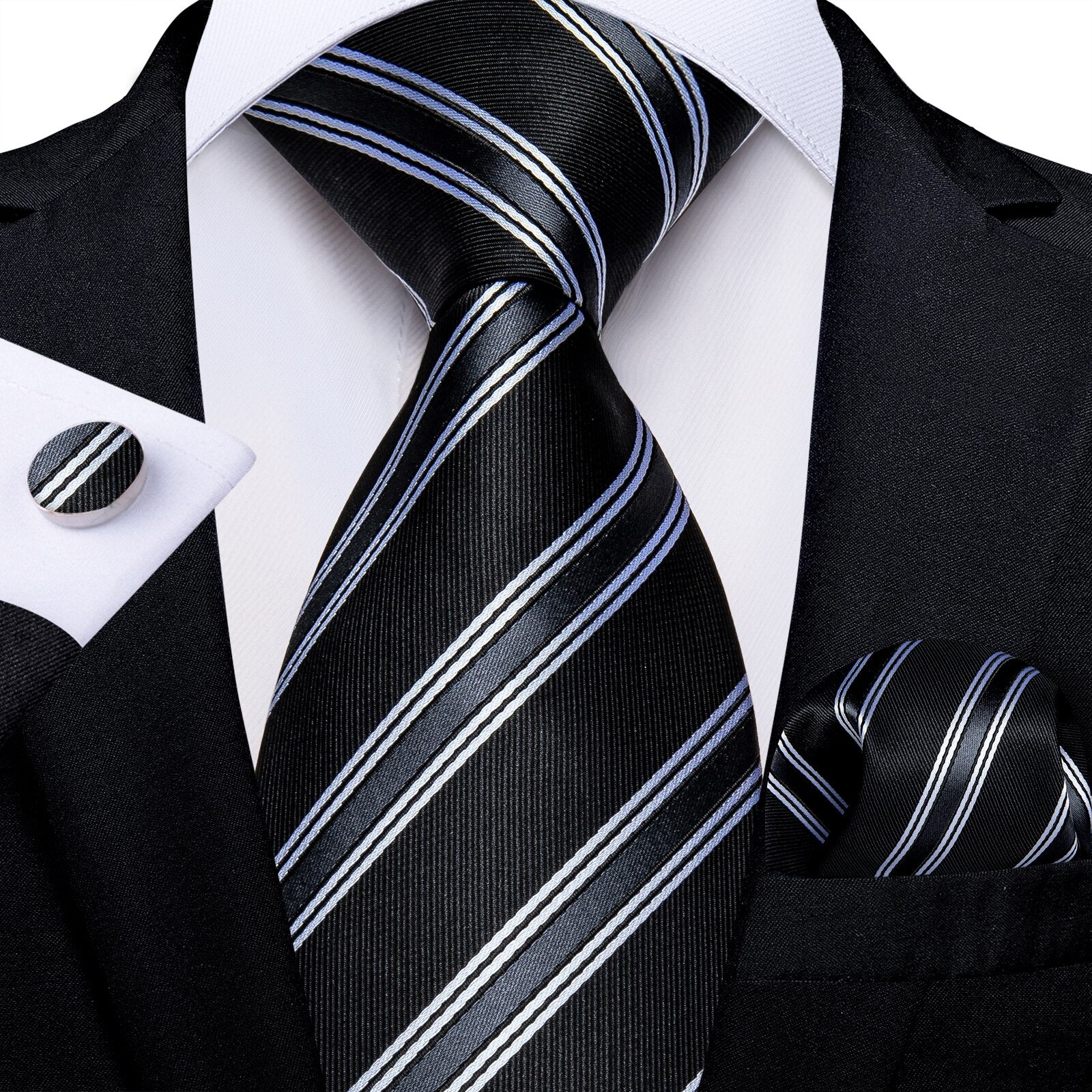 Gift Men Tie Teal Blue White Striped Silk wedding Tie For Men DiBanGu Designer Hanky Cufflink Quality Men Tie Set Business 7339