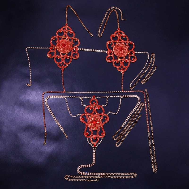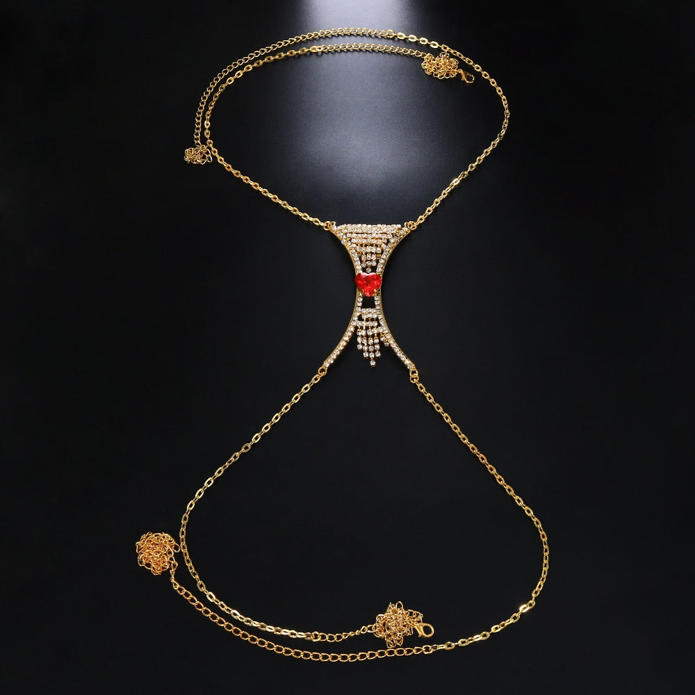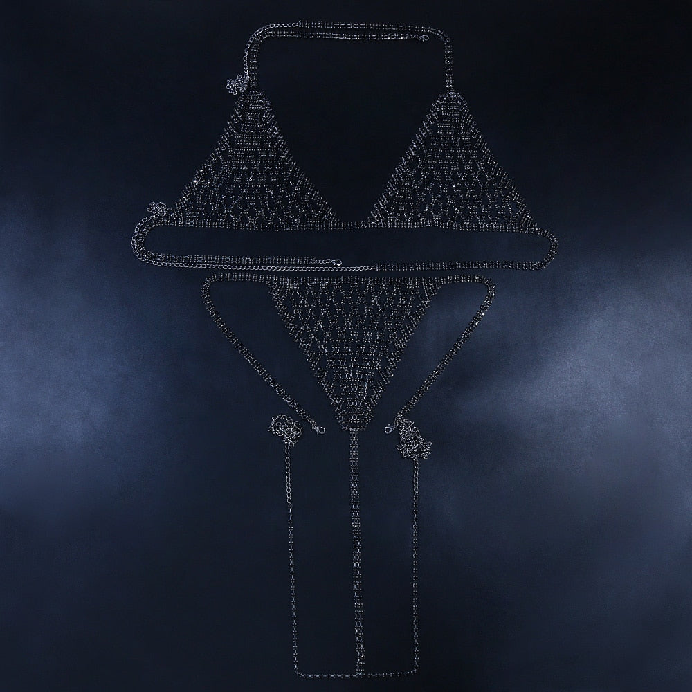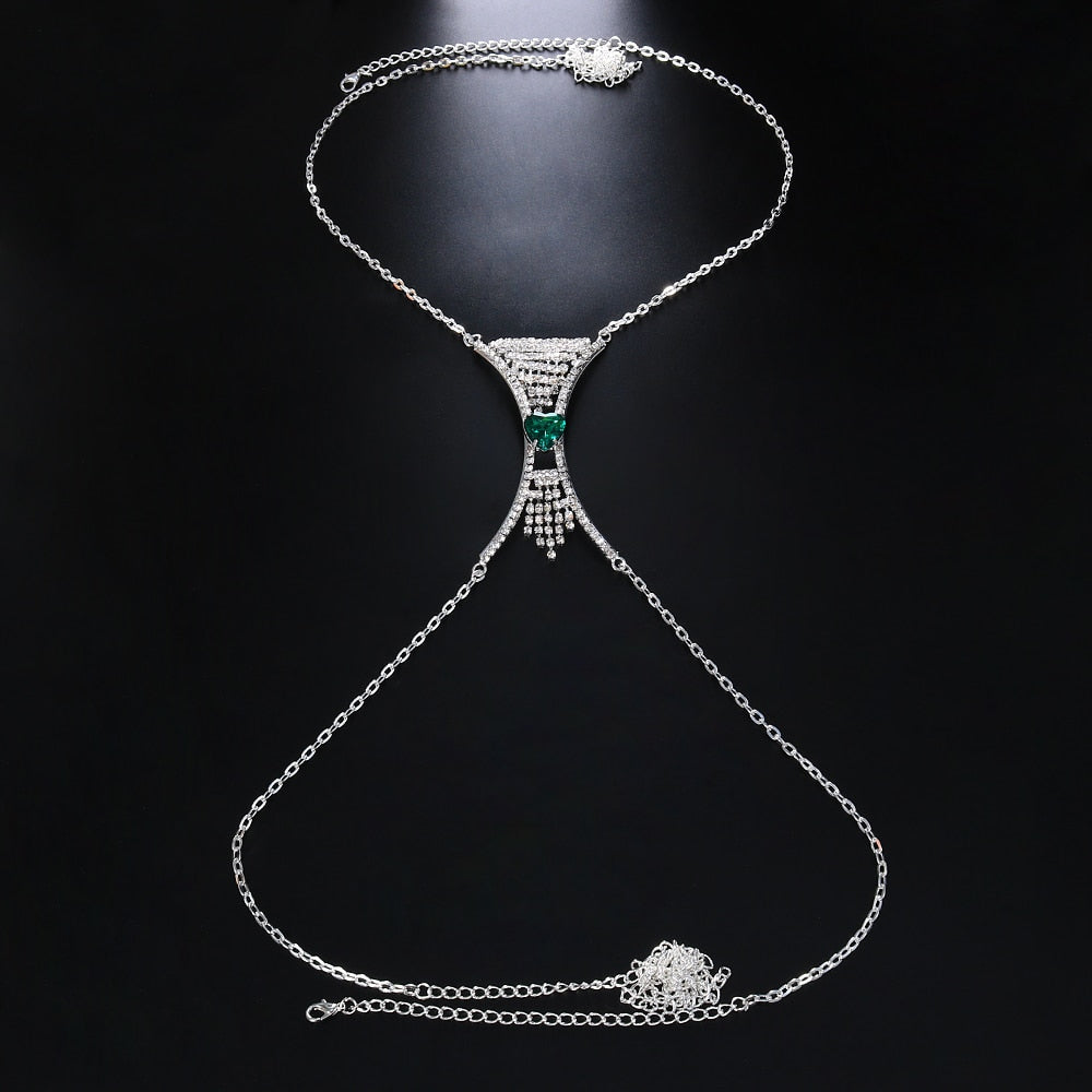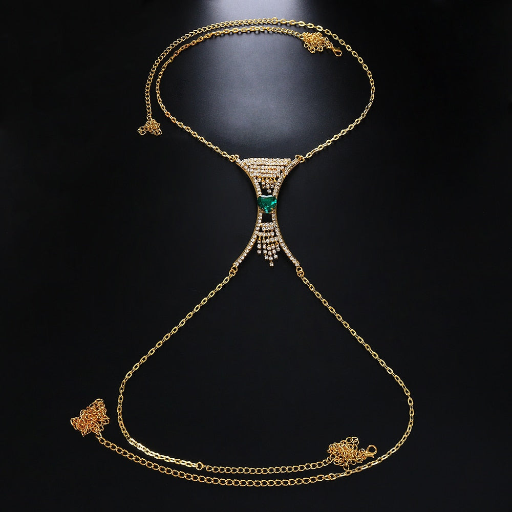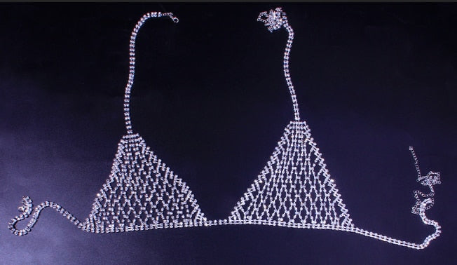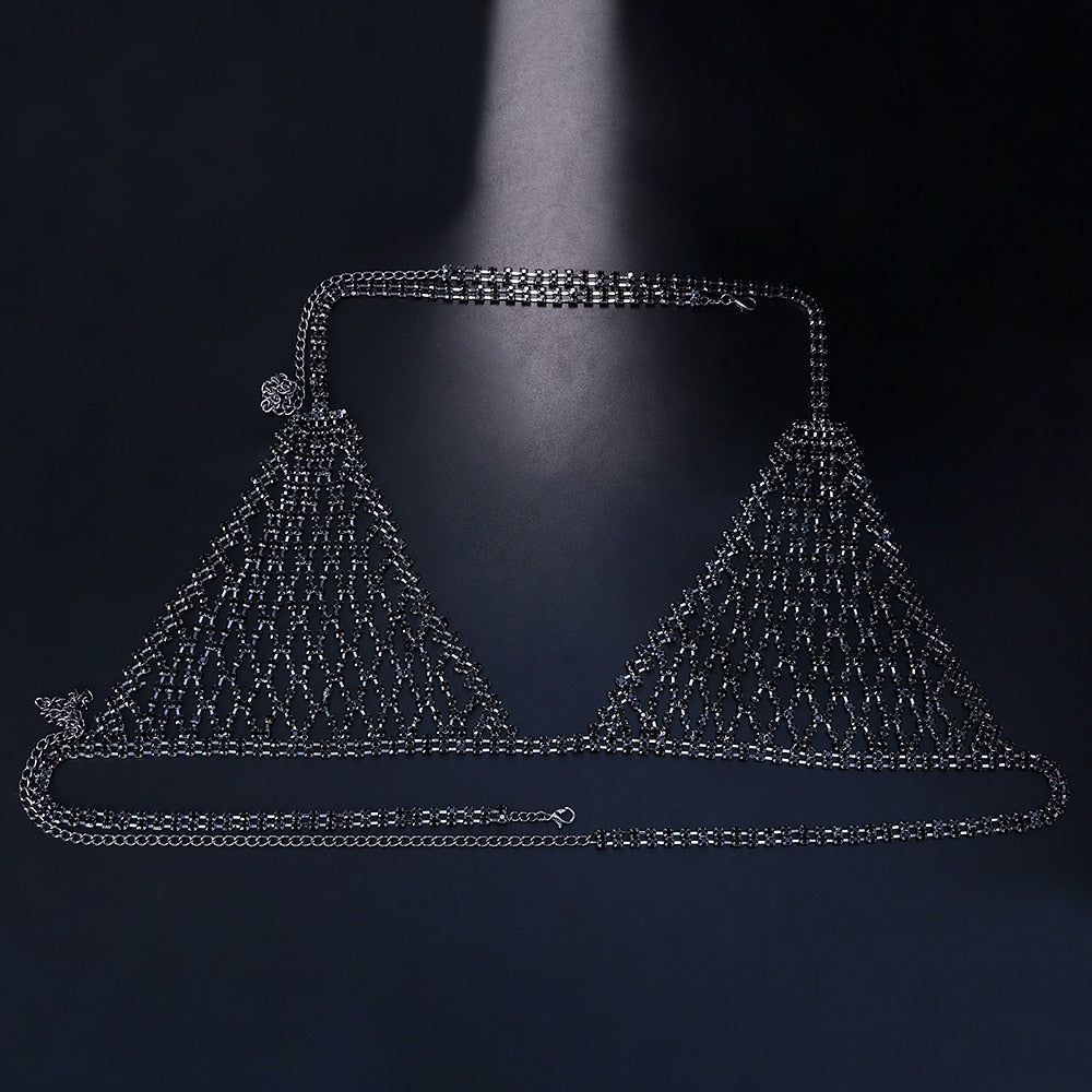 SPECIFICATIONS Type: Sexy body chain Style: TRENDY Shape\pattern: Geometric Shape: Bikini chest chain Origin: Mainland China Model Number: Rhinestone chest chain Metals Type: Copper Material: Rhinestone...