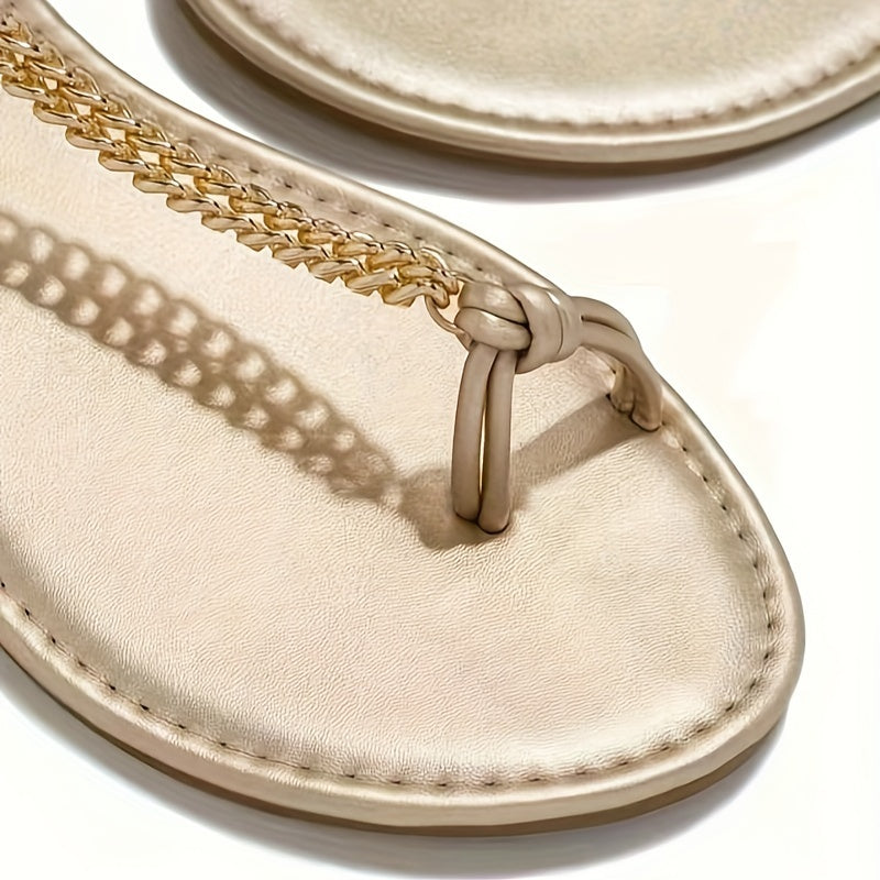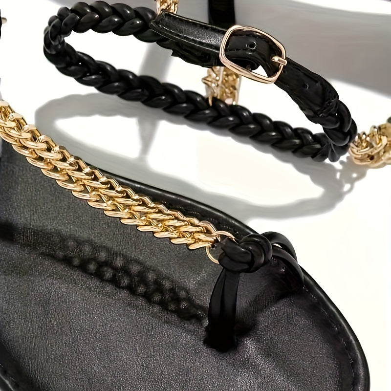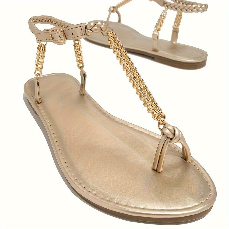 Women's Metal Chain Flat Sandals - Fashion Toe Loop Ankle Strap Summer Shoes - Stylish Beach Party Sandals - For Women - Suitable for Summer - Perfect Gift for Fashionistas