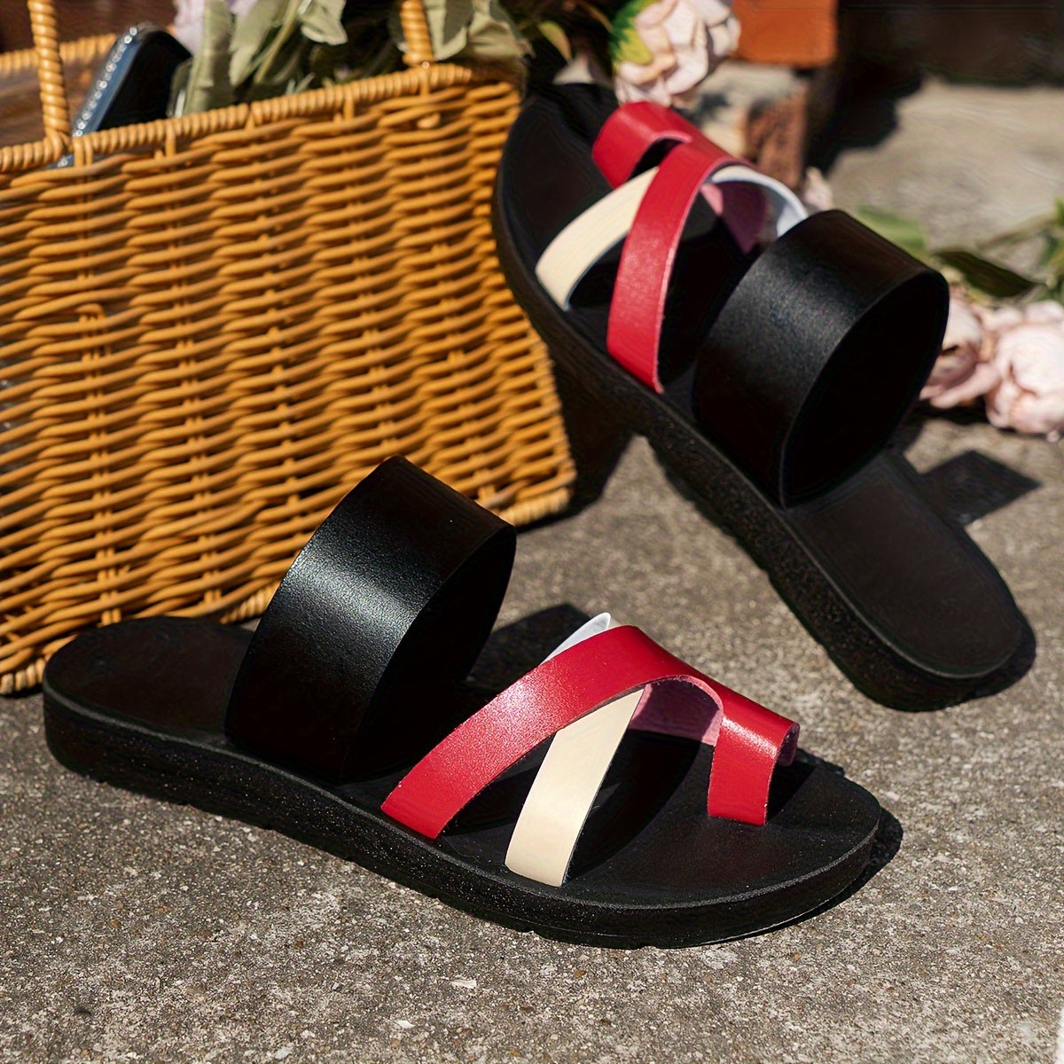 Women's Solid Color Slide Sandals - Casual Loop Toe Flat Summer Shoes, Lightweight Beach Shoes - For Women - Suitable for Summer, Beach, Vacation - Perfect Gift for Women