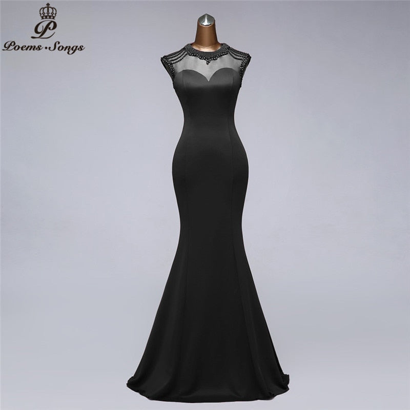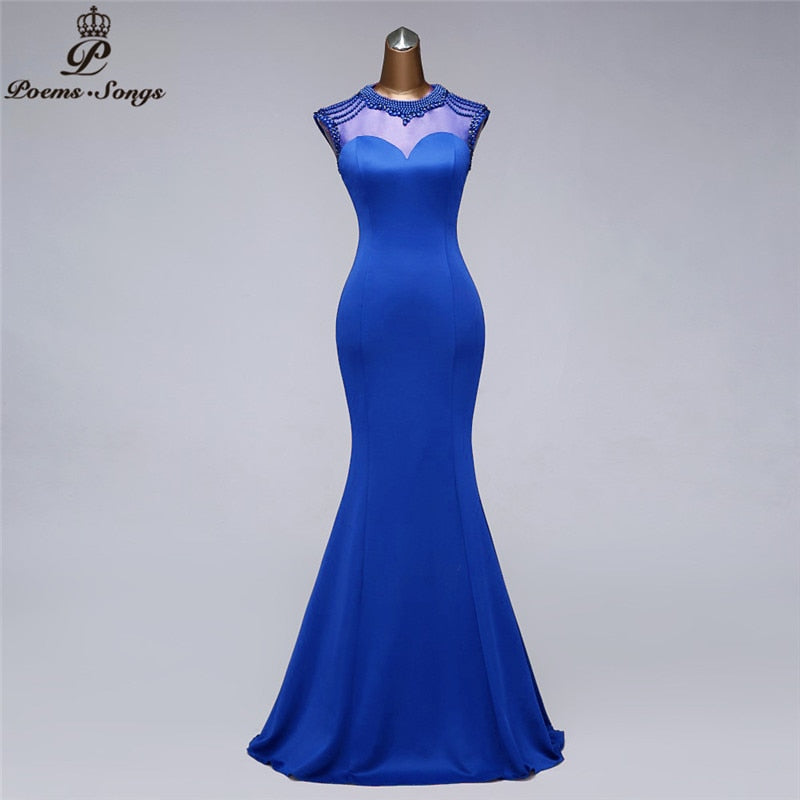 Elegant mermaid evening dress woman party night beading vestidos de fiesta de noche sleeveless evening gown party dress