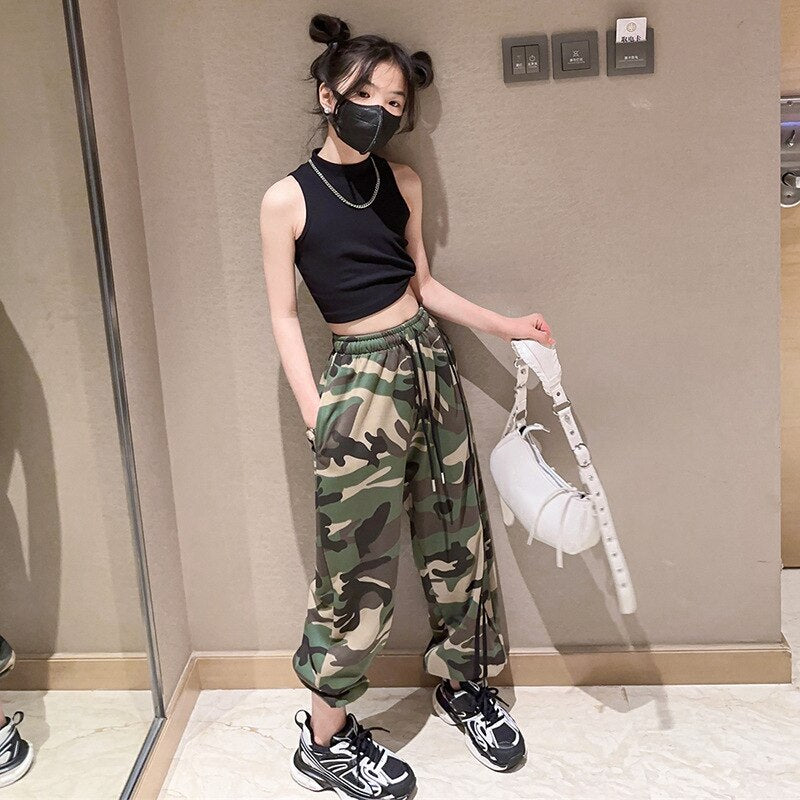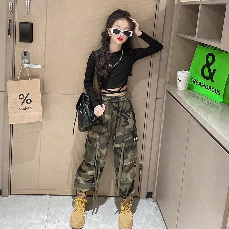Teenage Girls Cargo Pants Autumn Camouflage Sport Casual Trousers for Children Trendy Cool All-match Loose Kids Pants 12 13 Year