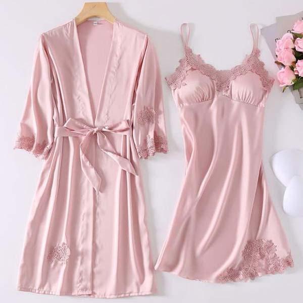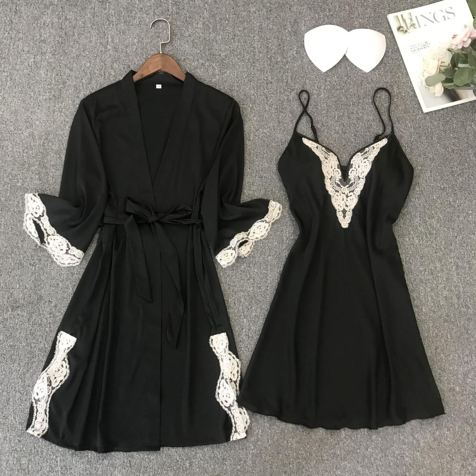 Satin Robe Set Sexy Female Sleepwear Summer Kimono Bathrobe Lace Trim Bride Bridesmaid Dressing Gown Casual Nightgown